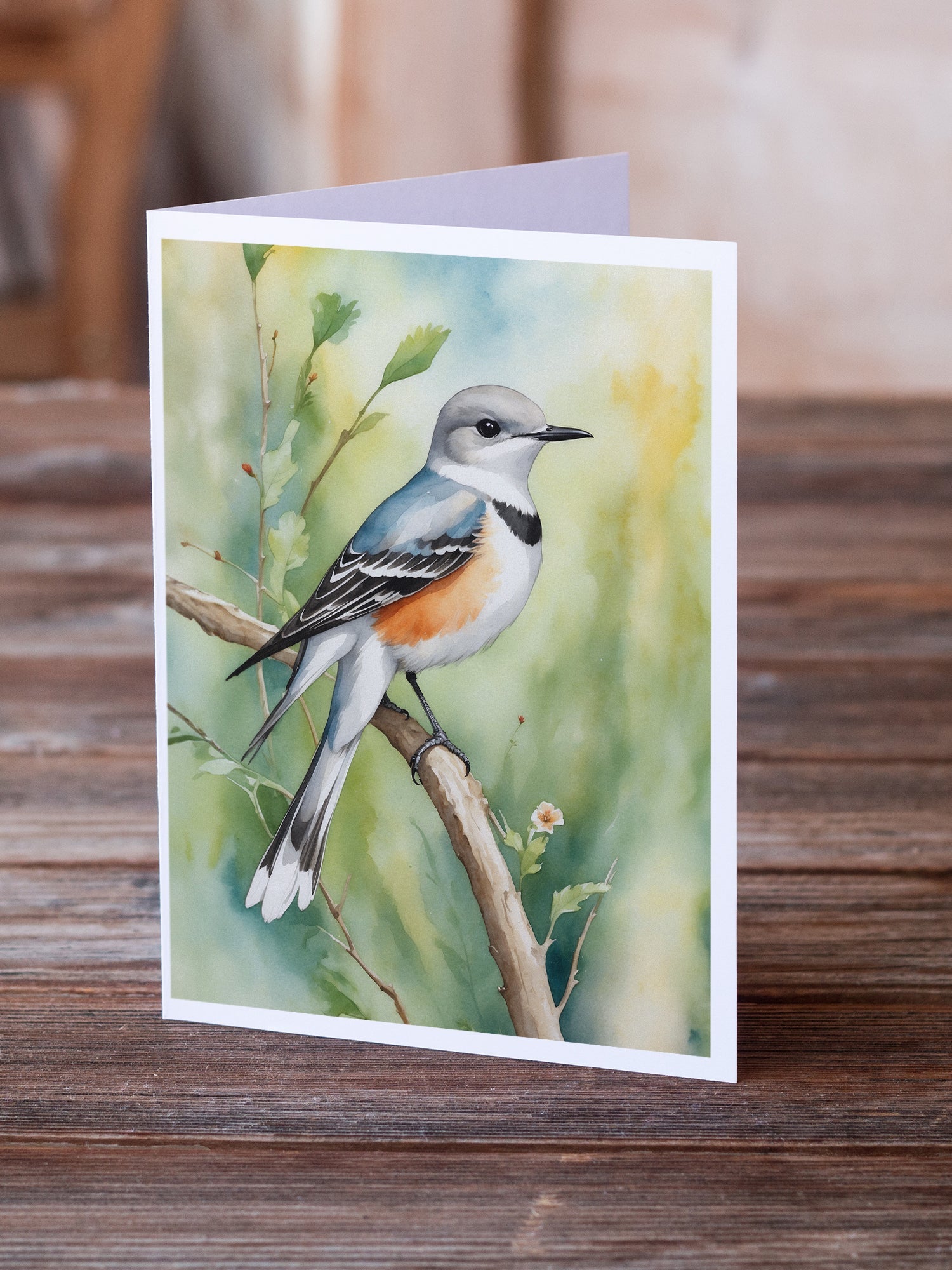 Greeting Cards Pack of 8 featuring breed specific Scissortailed Flycatcher artwork. Celebrate special moments with Caroline's Treasures Printed Greeting Card Pack. This pack includes eight beautifully folded 5x7 cards, accompanied by eight matching white envelopes. With blank interiors, these cards provide ample space for your personalized messages and heartfelt holiday greetings. Each card features captivating full-color artwork, meticulously printed in our facility on high-quality 80 lb cover stock or 216 GSM. The super smooth finish of the white cards enhances the visual impact of the artwork, creating a truly stunning presentation. Designed by our talented in-house artists or licensed artists, the artwork on these cards showcases their creativity and attention to detail. From vibrant illustrations to captivating designs, each card tells its own unique story. Whether it's for birthdays, anniversaries, holidays, or any special occasion, Caroline's Treasures Greeting Card Pack is the perfect way to convey your heartfelt sentiments. Share joy, love, and warm wishes with these exquisite cards and make every moment unforgettable.