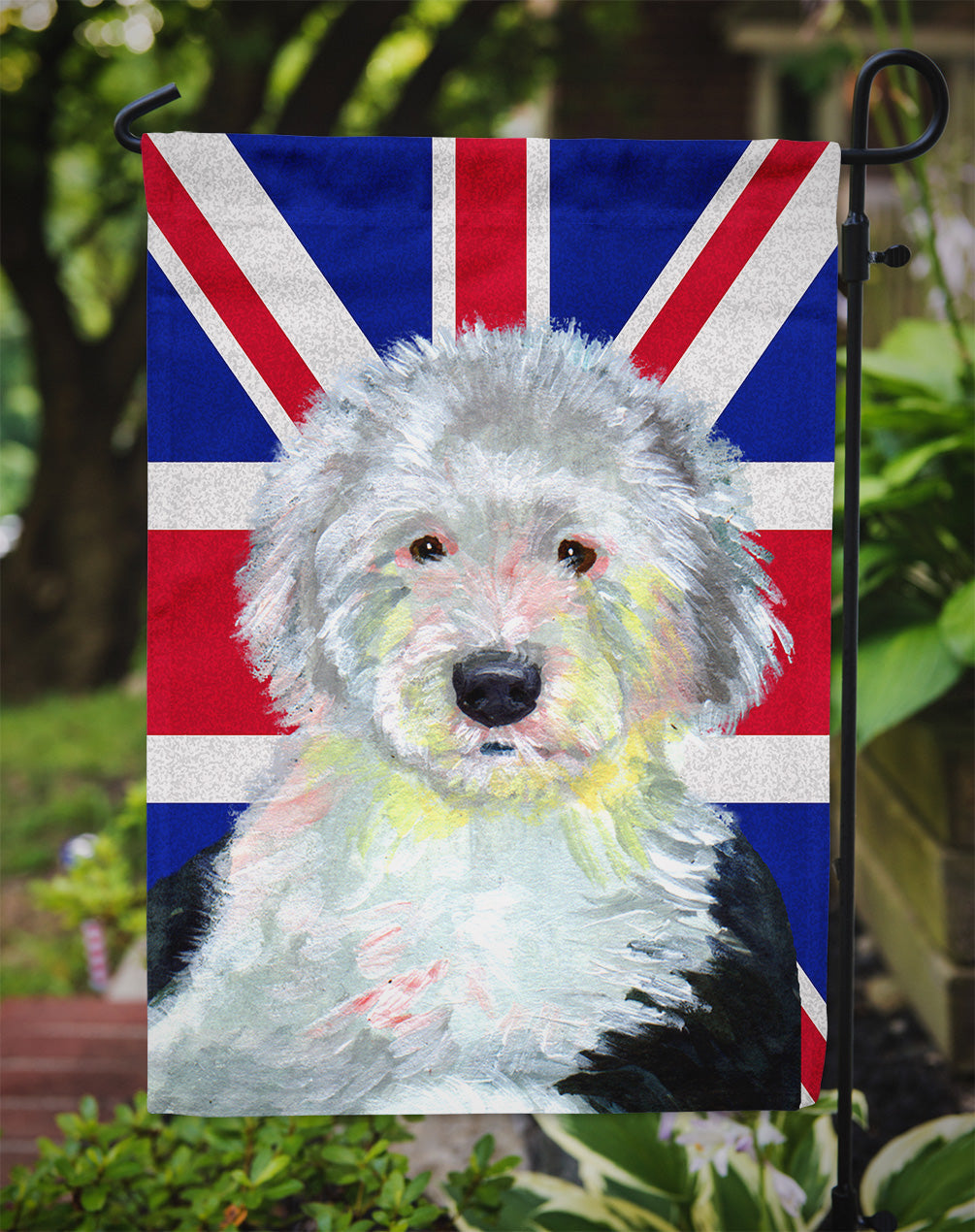 Old English Sheepdog with English Union Jack British Flag Garden Flag – Decorative Outdoor Yard Flag LH9497GF
