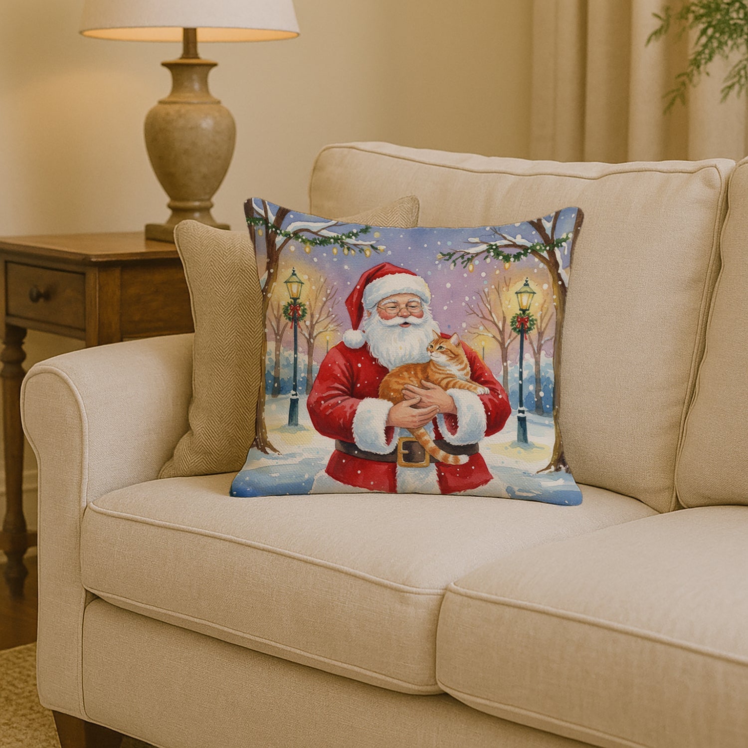 Throw Pillow featuring breed specific Orange Classic Tabby artwork. Celebrate Christmas with this Christmas Pillow. Add a touch of vibrancy and comfort to your outdoor seating with Caroline's Treasures Fabric Decorative Pillow. Measuring approximately 14 inches by 14 inches, this outdoor pillow is crafted to elevate the appeal of your patio furniture, infusing it with vivid color and artistic flair. The pillow includes a 100% Polyester Fabric sham filled with a quality pillow form to provide superior comfort. Innovatively made from our brand new material, specifically woven for its water resistance, this pillow is designed for durability. The soft canvas fabric offers versatility in use, fit for your indoor couch or your outdoor patio, porch, or veranda. The fabric is dyed with colorfast dyes built for resilience against weather conditions, ensuring the pillow retains its beauty over time. Constructed by sewing three fabric pieces to create a sham, the polyester insert is then nestled inside to form the pillow, resulting in an overstuffed pillow that maintains its shape. Both the sham and the pillow insert are proudly made in the United States. As the pillows are handcrafted, there may be minor variations in size, further enhancing their unique charm. Experience comfort in style with Caroline's Treasures Fabric Decorative Pillow.