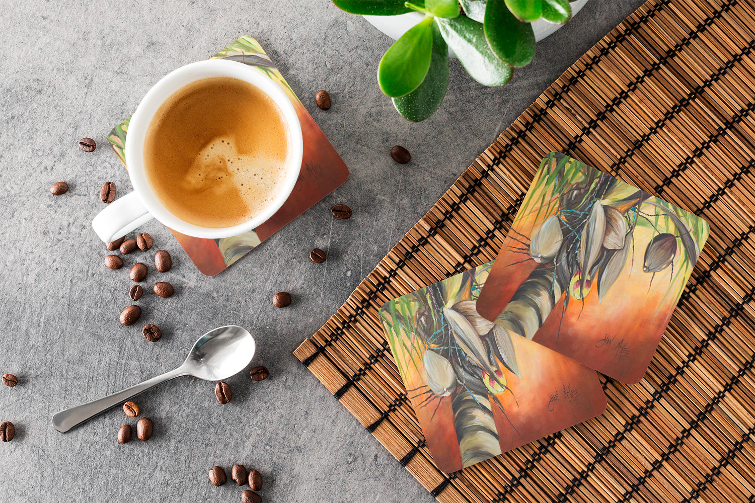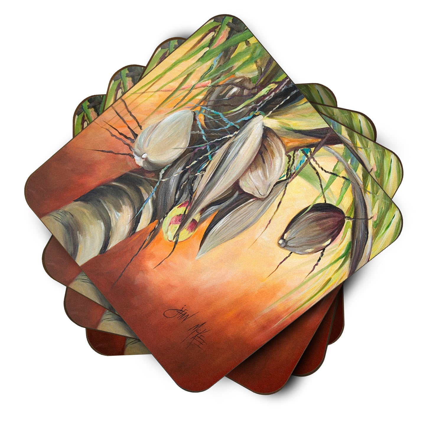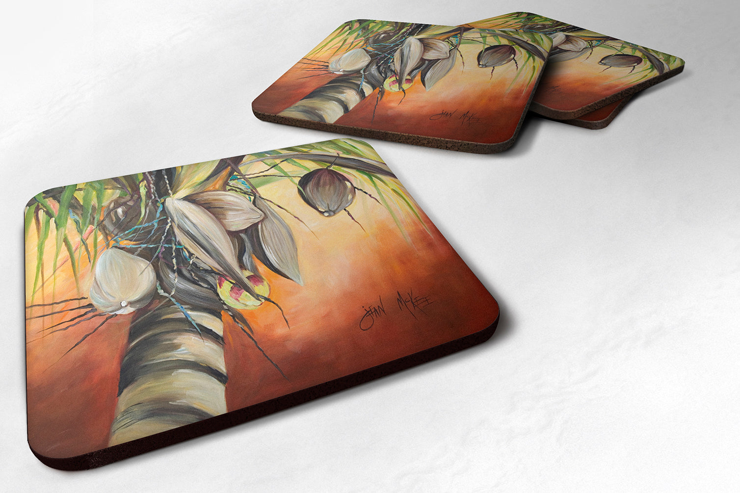 Orange Coconut Tree Coasters - Set of 4 Lightweight Foam, Absorbent Drink Coasters JMK1280FC