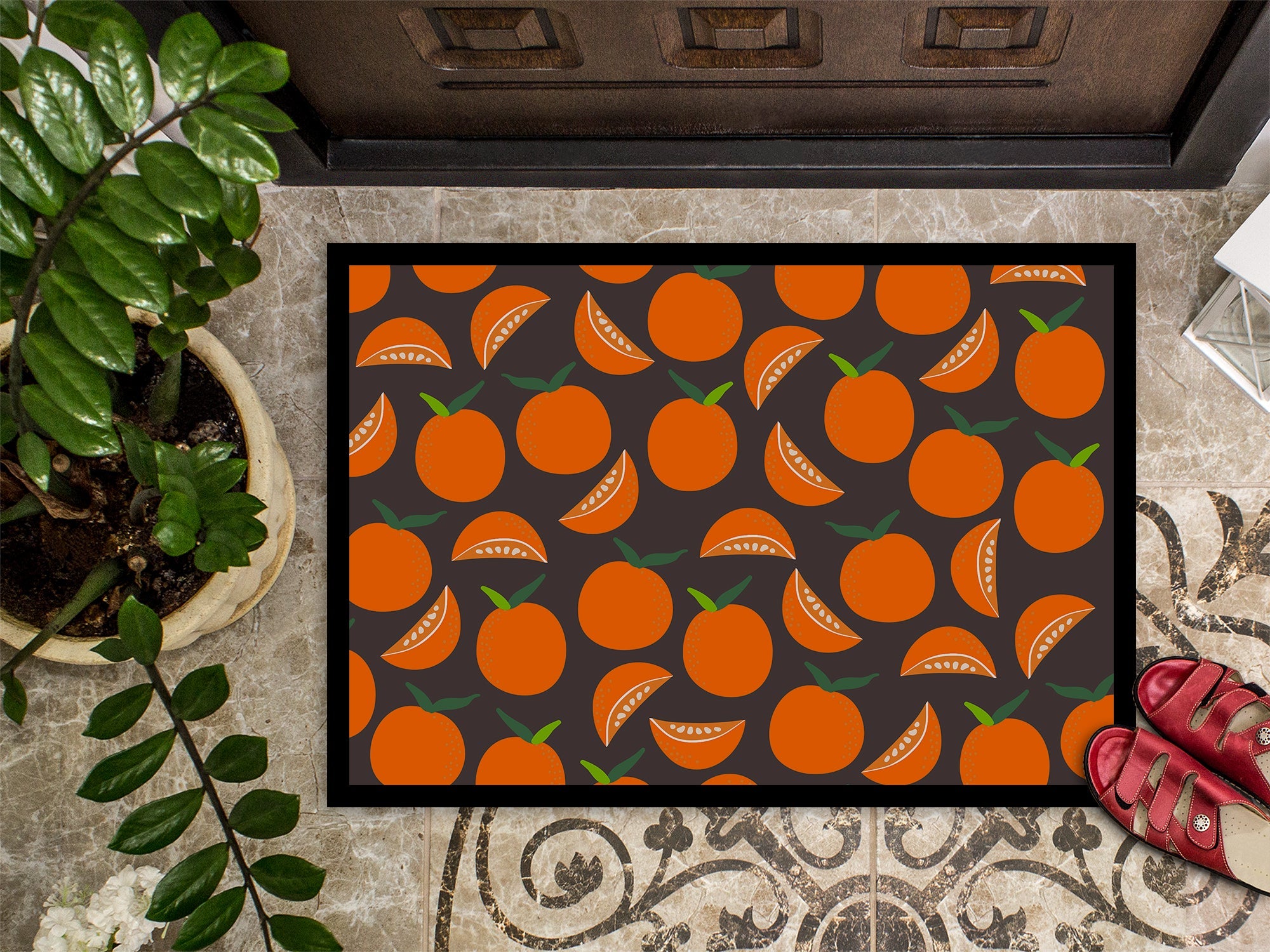 Oranges on Gray Doormat - 18x27 Decorative Floor Mat – Indoor/Outdoor Rug with Artistic Flair BB5142MAT