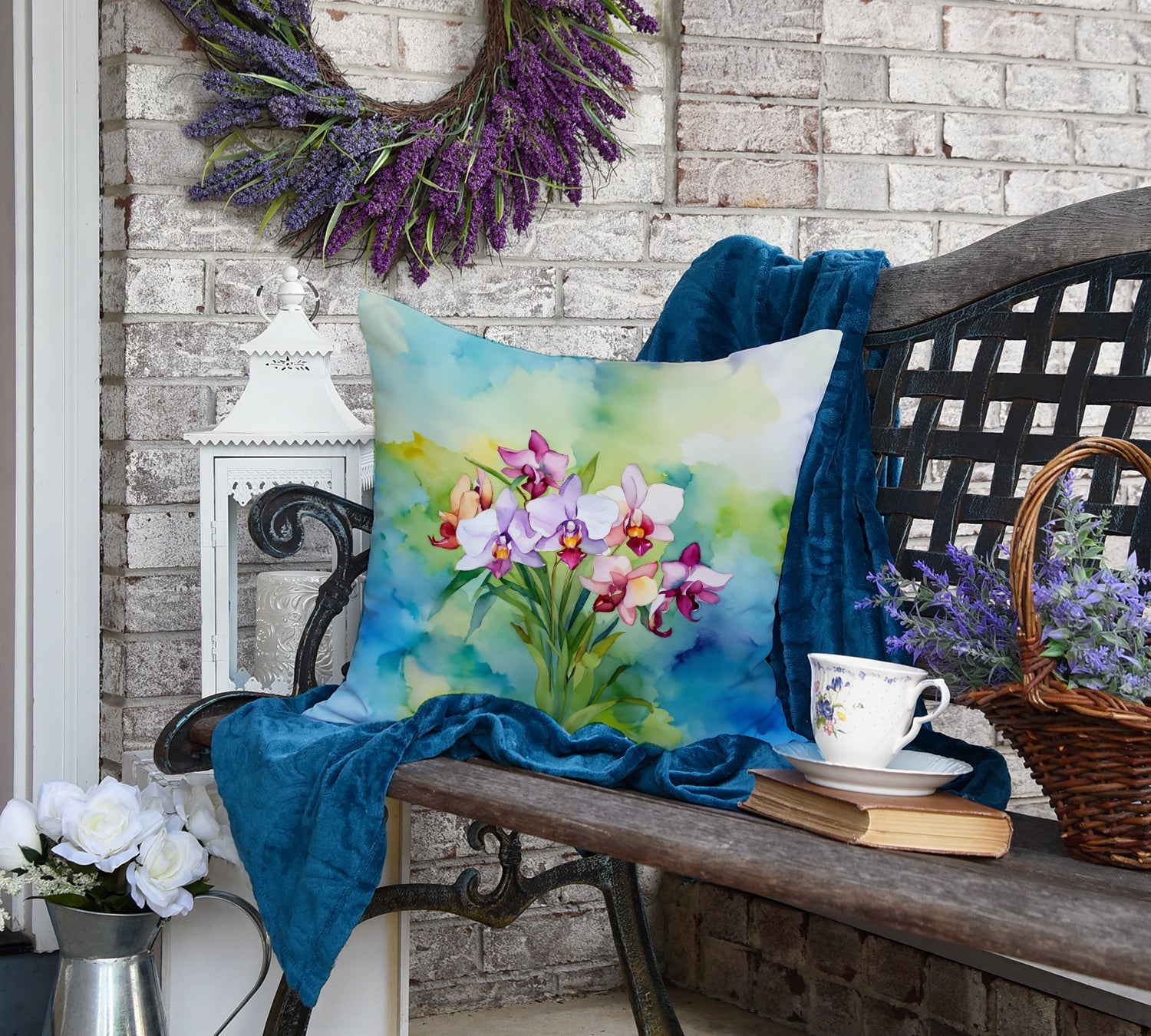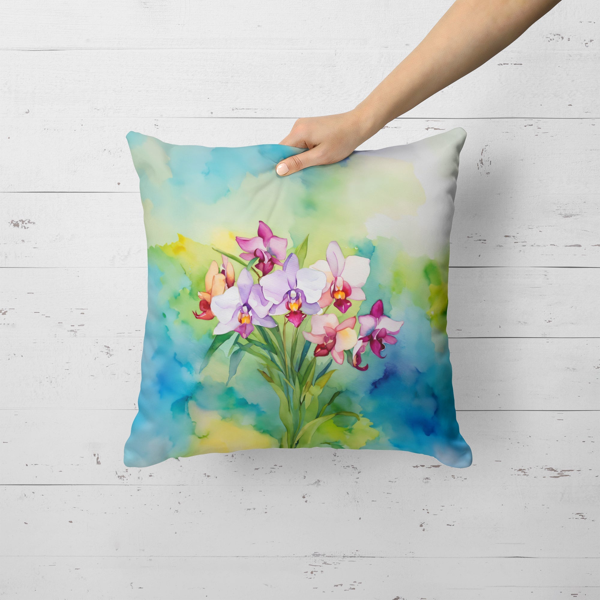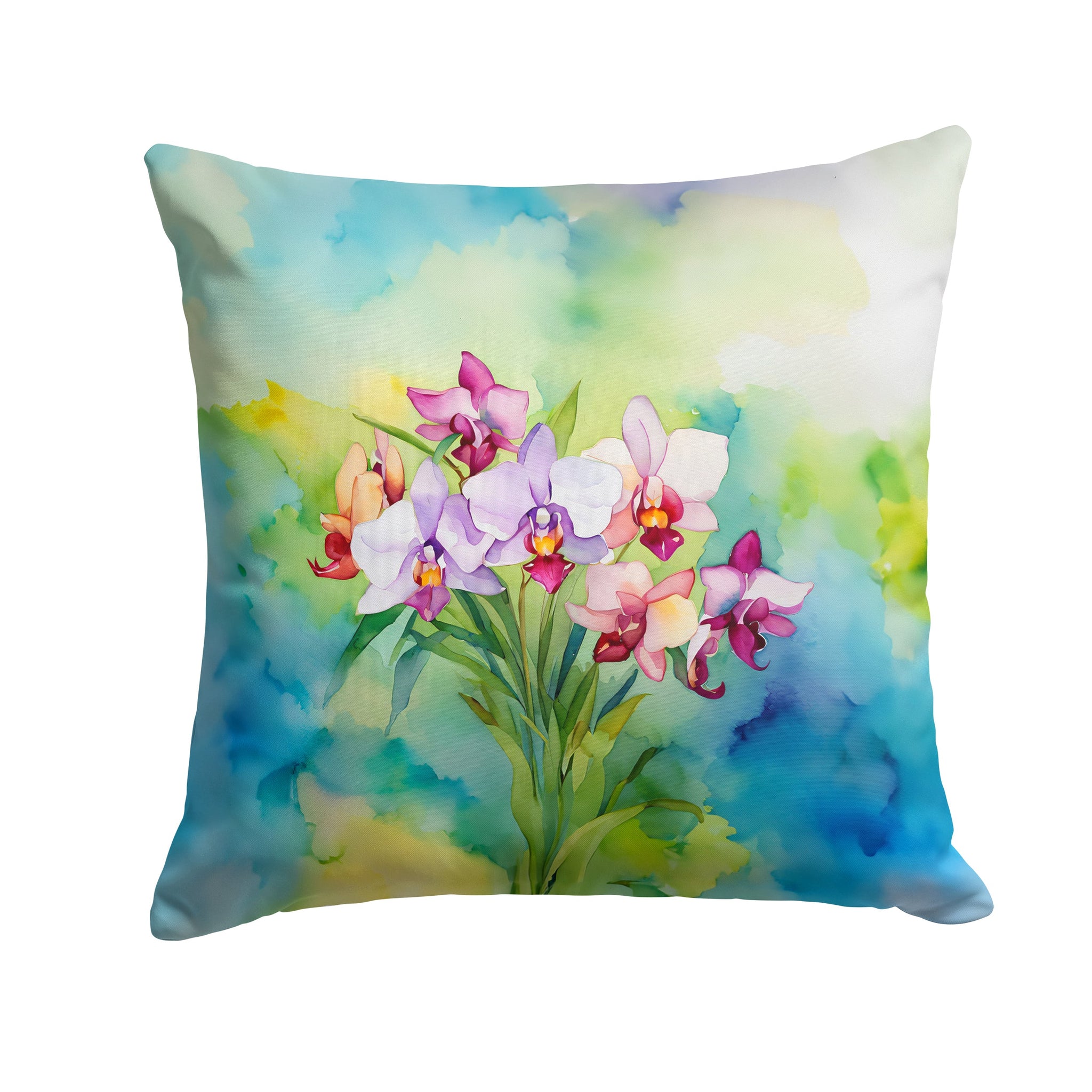 Throw Pillow featuring breed specific Orchids artwork. Revitalize your outdoor or indoor living space with Caroline's Treasures 18x18 Fabric Decorative Pillow. With a generously sized dimension of approximately 18 inches by 18 inches, this pillow makes a comfortable and aesthetic addition to any seating area. Made from a unique, water-resistant material developed by Caroline's Treasures, the pillow sham is 100% polyester fabric that's durable and ready to weather any condition. Its vibrant, full-color artwork will not fade over time as it is dyed with color-fast dyes. Whether you place it on your patio furniture, porch, veranda, or indoor couch, its soft canvas fabric ensures a cozy experience. The pillow is handcrafted in the United States, featuring a sham created from three pieces of fabric and a polyester insert for enduring shape and overstuffed comfort. Despite being robustly built to endure the outdoors, it is as soft and snug as your favorite indoor cushions. Please note, as all our pillows are handmade, sizes may vary slightly, adding to the charm of this unique decorative item.