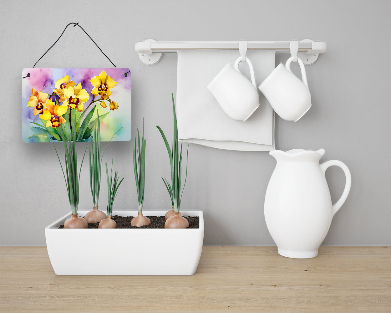 Decorate your space with our Orchids artwork on a Metal Print. Add a splash of color and artistic flair to any indoor or outdoor space with our Aluminum Artwork Prints. These unique prints, featuring full-color, multicolor designs, provide a versatile decorative touch that can enhance a kitchen, bathroom, office, outdoor patio, or even the front door area. Each print measures 8 inches by 12 inches, making it the perfect size to catch the eye without overwhelming your space. Constructed with durability in mind, these prints can be placed outdoors and withstand direct sunlight for a significant amount of time before any fading begins. Designed for easy installation, each print features a black hanging rope and has a lightweight profile. This allows for quick hanging with just about any nail or screw. For safety and aesthetic appeal, the print's corners are gently rounded. The back of the print showcases a brushed silver color for an added touch of elegance. Rust and fade-resistant, these Aluminum Artwork Prints are not only beautiful but are also built to last. Elevate your space with these stunning prints, crafted with care and artistic passion.