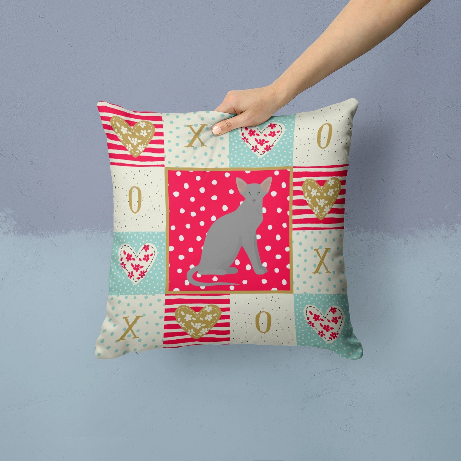 Decorate your space with our Valentine's Day Oriental Shorthair artwork on a Pillow. Add a touch of vibrancy and comfort to your outdoor seating with Caroline's Treasures Fabric Decorative Pillow. Measuring approximately 14 inches by 14 inches, this outdoor pillow is crafted to elevate the appeal of your patio furniture, infusing it with vivid color and artistic flair. The pillow includes a 100% Polyester Fabric sham filled with a quality pillow form to provide superior comfort. Innovatively made from our brand new material, specifically woven for its water resistance, this pillow is designed for durability. The soft canvas fabric offers versatility in use, fit for your indoor couch or your outdoor patio, porch, or veranda. The fabric is dyed with colorfast dyes built for resilience against weather conditions, ensuring the pillow retains its beauty over time. Constructed by sewing three fabric pieces to create a sham, the polyester insert is then nestled inside to form the pillow, resulting in an overstuffed pillow that maintains its shape. Both the sham and the pillow insert are proudly made in the United States. As the pillows are handcrafted, there may be minor variations in size, further enhancing their unique charm. Experience comfort in style with Caroline's Treasures Fabric Decorative Pillow.