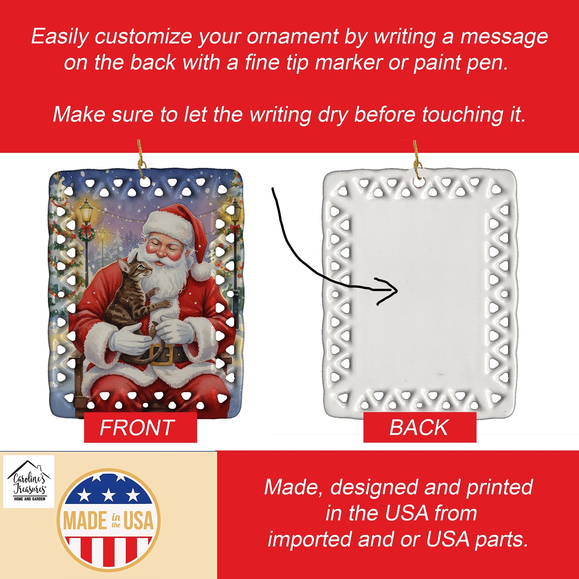 Porcelain Ornament featuring breed specific Oriental Shorthair Cat artwork. Celebrate Christmas with this Christmas Ornament. Add a unique, personal touch to your holiday decor with our Rectangular Lattice Porcelain Ornament. Perfect for creating cherished memories, this high-quality ornament shines under festive lights, reflecting warmth and joy throughout your Christmas tree. Crafted with a glossy finish, it showcases vibrant, full-color artwork contributed by our talented artists, ensuring your tree is adorned with a burst of color and holiday spirit. What sets this Porcelain Ornament apart is its customizable white back. Use a paint pen or permanent marker to write a heartfelt message, commemorate a special year, or mark an unforgettable date, turning this ornament into a keepsake that will be treasured for years to come. For best results, allow any personalization to dry thoroughly before handling. Each ornament comes complete with a delicate gold cord, making it easy to hang and display. Proudly made in the USA, this ornament measures 3.375 x 2.625 inches and is a thoughtful gift for pet sitters, teachers, family members, or anyone who would appreciate a little extra holiday magic. Bring style, charm, and a touch of personal meaning to your Christmas tree with this beautifully designed ornament..