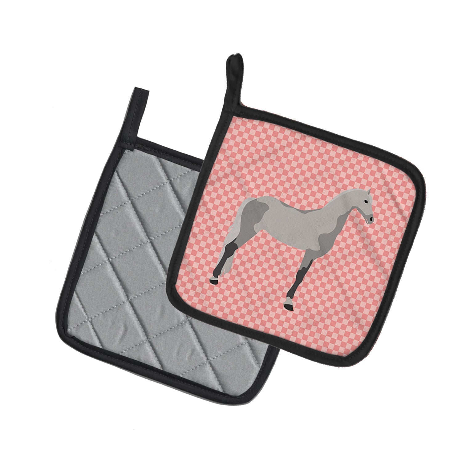 Decorate your space with our Orlov Trotter Horse artwork on a Pair of Pot Holders. A Pair of Pot Holders to match your kitchen decor. Made in the USA these are thick and functional. Full color artwork decorates the front polyester fabric of the hot pad and accented by a black trim. Use these at as a trivet for your Thanksgiving or Christmas tablescape. Filled with insulated fabric and quilted for durability. These colorful pot holders will make a great gift for your favorite home cook or executive chef. Each pot holder measures approximately 7 1/2 inches by 7 1/2 inches. A hanging tab is included.