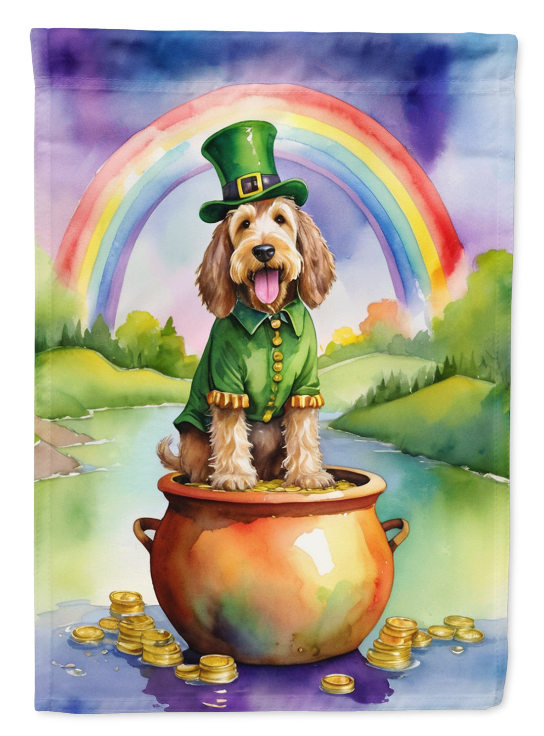 Decorate your space with our St Patrick's Day Otterhound artwork on a Large Flag. Presenting our Heavy Duty Polyester House Size Decorative Sleeve Pole Flag, a vibrant addition to enhance the aesthetic appeal of your home. This large decorative flag, measuring approximately 28 x 40 inches, offers ample coverage and visibility. Each flag is meticulously sewn and made individually, ensuring a unique piece that may slightly vary in size. It's a sleeve pole flag, designed to fit a standard decorative flag pole effortlessly. Please note that the flag pole and bracket are not included and should be purchased separately. What sets our flag apart is its dual-sided print. The design is mirrored on both sides of the fabric, allowing for uniform visibility regardless of the angle. Printed in full color, our flag showcases vibrant hues that truly stand out. To ensure lasting vibrancy and durability, the dyes are heat-set into the fabric. This ensures your flag remains bright and captivating through various weather conditions. Elevate the look of your home with our Heavy Duty Polyester House Size Decorative Sleeve Pole Flag!