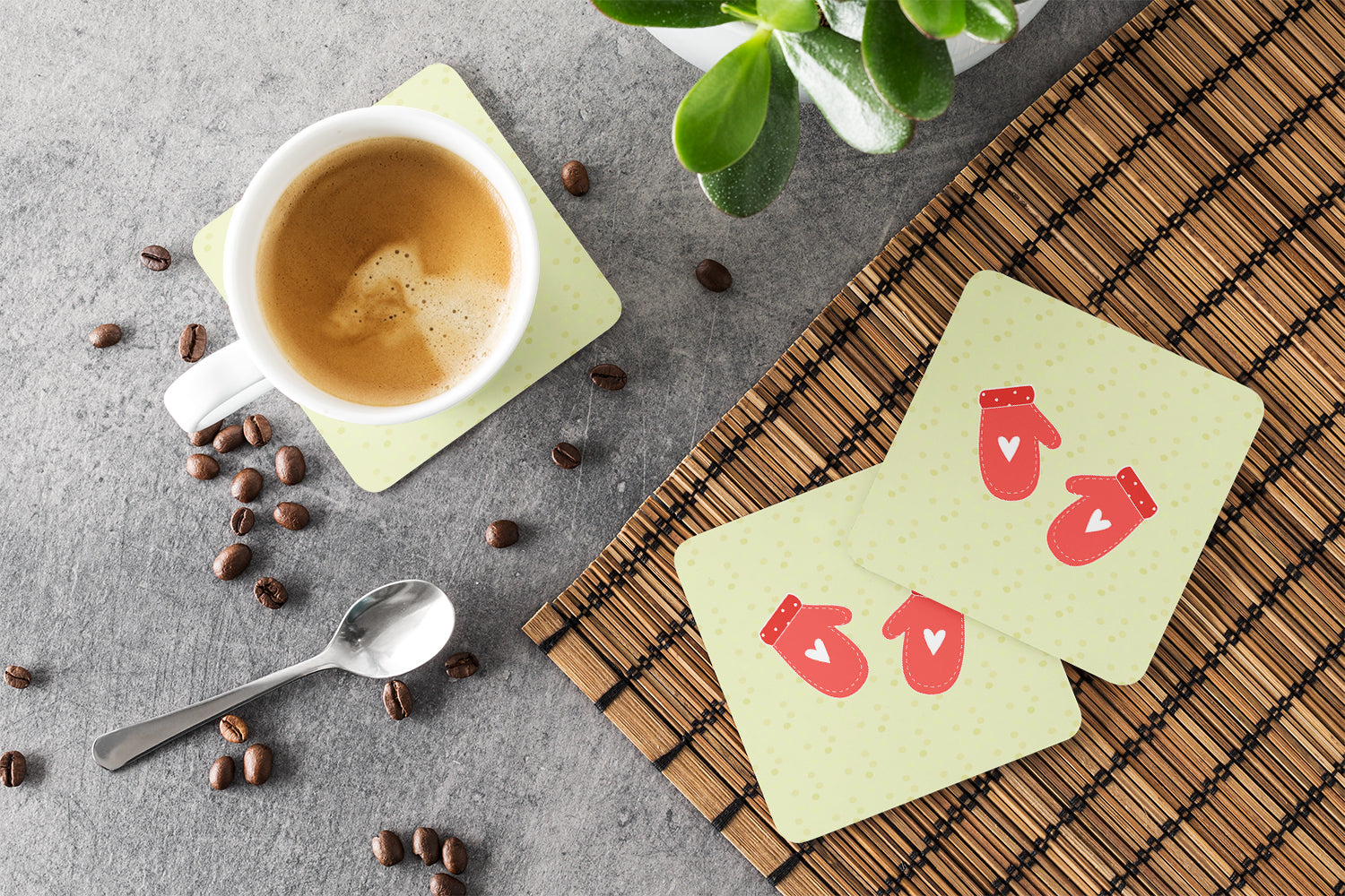 Oven Mitts on Green Foam Coaster BB7297FC