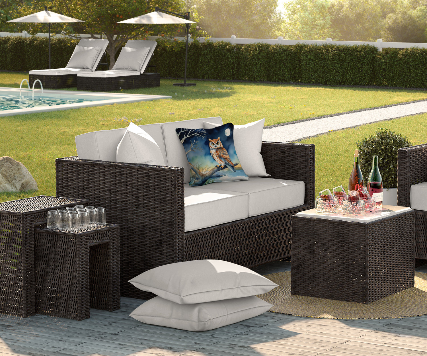 Throw Pillow featuring breed specific Owl artwork. Revitalize your outdoor or indoor living space with Caroline's Treasures 18x18 Fabric Decorative Pillow. With a generously sized dimension of approximately 18 inches by 18 inches, this pillow makes a comfortable and aesthetic addition to any seating area. Made from a unique, water-resistant material developed by Caroline's Treasures, the pillow sham is 100% polyester fabric that's durable and ready to weather any condition. Its vibrant, full-color artwork will not fade over time as it is dyed with color-fast dyes. Whether you place it on your patio furniture, porch, veranda, or indoor couch, its soft canvas fabric ensures a cozy experience. The pillow is handcrafted in the United States, featuring a sham created from three pieces of fabric and a polyester insert for enduring shape and overstuffed comfort. Despite being robustly built to endure the outdoors, it is as soft and snug as your favorite indoor cushions. Please note, as all our pillows are handmade, sizes may vary slightly, adding to the charm of this unique decorative item.