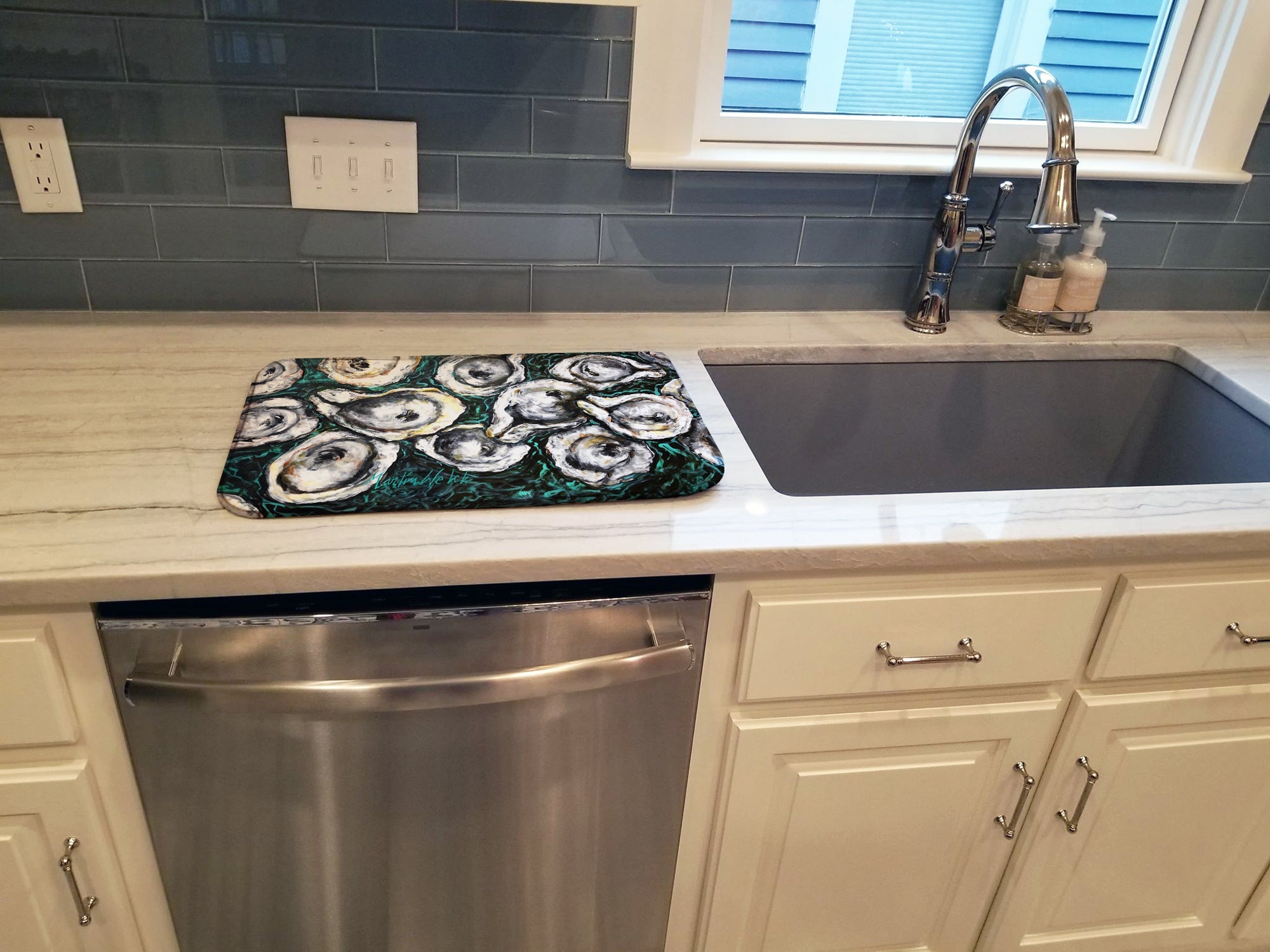 Oyster Lily Dish Drying Mat – Absorbent, Artistic Kitchen Essentials