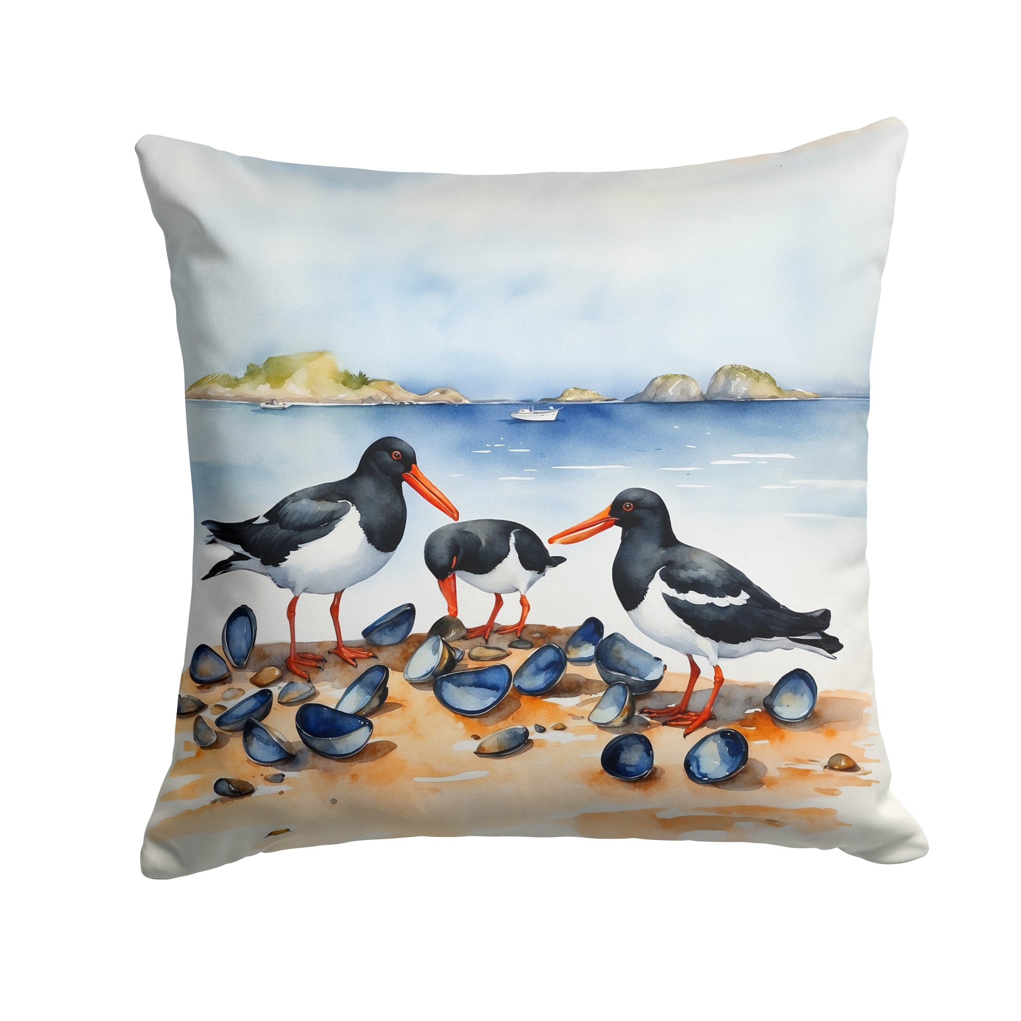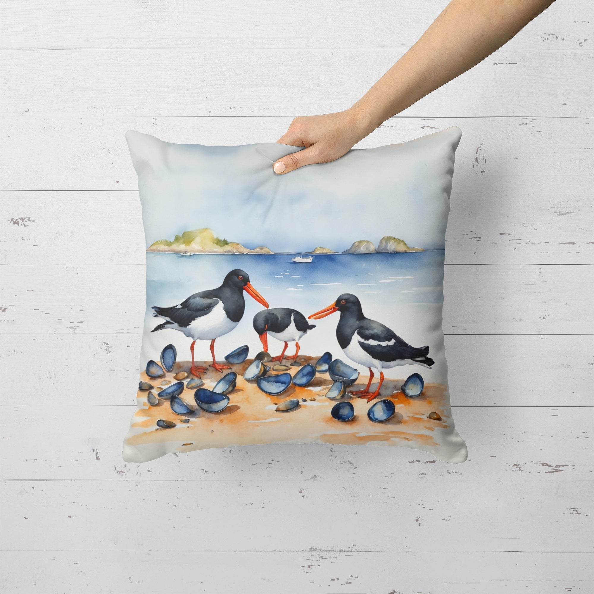 Throw Pillow featuring breed specific Oystercatchers artwork. Revitalize your outdoor or indoor living space with Caroline's Treasures 18x18 Fabric Decorative Pillow. With a generously sized dimension of approximately 18 inches by 18 inches, this pillow makes a comfortable and aesthetic addition to any seating area. Made from a unique, water-resistant material developed by Caroline's Treasures, the pillow sham is 100% polyester fabric that's durable and ready to weather any condition. Its vibrant, full-color artwork will not fade over time as it is dyed with color-fast dyes. Whether you place it on your patio furniture, porch, veranda, or indoor couch, its soft canvas fabric ensures a cozy experience. The pillow is handcrafted in the United States, featuring a sham created from three pieces of fabric and a polyester insert for enduring shape and overstuffed comfort. Despite being robustly built to endure the outdoors, it is as soft and snug as your favorite indoor cushions. Please note, as all our pillows are handmade, sizes may vary slightly, adding to the charm of this unique decorative item.
