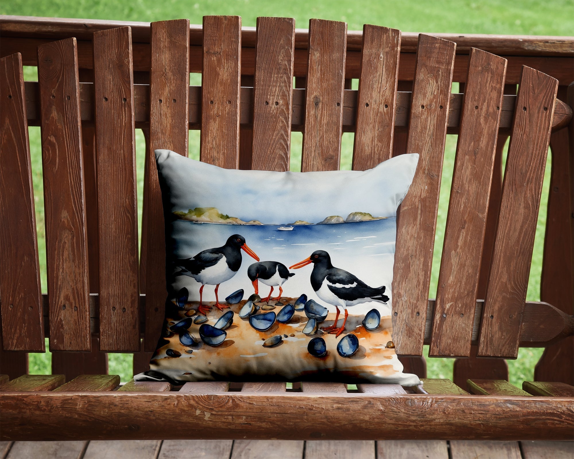 Throw Pillow featuring breed specific Oystercatchers artwork. Add a touch of vibrancy and comfort to your outdoor seating with Caroline's Treasures Fabric Decorative Pillow. Measuring approximately 14 inches by 14 inches, this outdoor pillow is crafted to elevate the appeal of your patio furniture, infusing it with vivid color and artistic flair. The pillow includes a 100% Polyester Fabric sham filled with a quality pillow form to provide superior comfort. Innovatively made from our brand new material, specifically woven for its water resistance, this pillow is designed for durability. The soft canvas fabric offers versatility in use, fit for your indoor couch or your outdoor patio, porch, or veranda. The fabric is dyed with colorfast dyes built for resilience against weather conditions, ensuring the pillow retains its beauty over time. Constructed by sewing three fabric pieces to create a sham, the polyester insert is then nestled inside to form the pillow, resulting in an overstuffed pillow that maintains its shape. Both the sham and the pillow insert are proudly made in the United States. As the pillows are handcrafted, there may be minor variations in size, further enhancing their unique charm. Experience comfort in style with Caroline's Treasures Fabric Decorative Pillow.