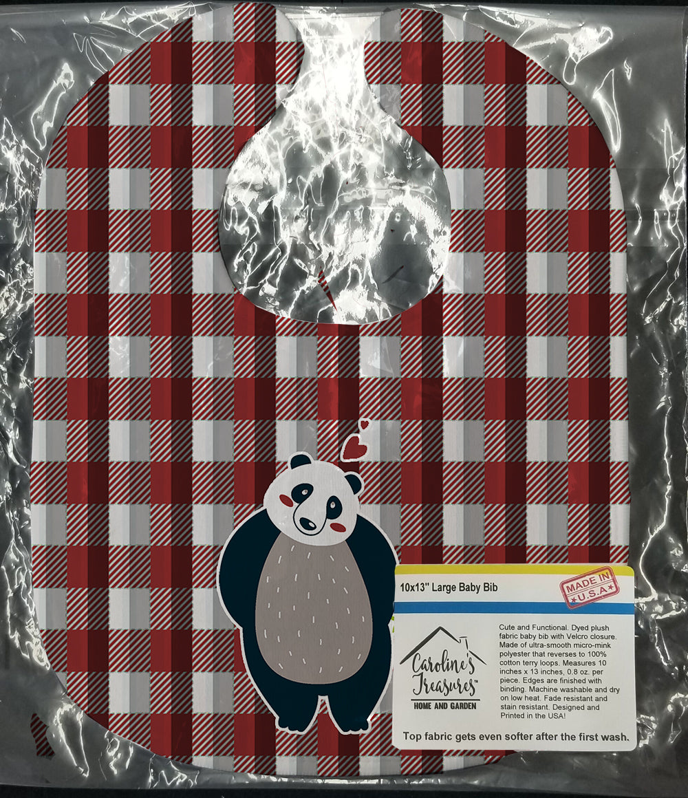 Decorate your space with our Valentine's Day Panda Bear artwork on a Baby Bib. Cute and Functional. Dyed plush fabric baby bib with Velcro closure. Made of ultra-smooth micro-mink polyester that reverses to 100% cotton terry loops. Measures 10 inches x 13 inches, 0.8 oz. per piece. Edges are finished with binding. Machine washable and dry on low heat. Fade resistant and stain resistant. Top fabric gets even softer after the first wash.