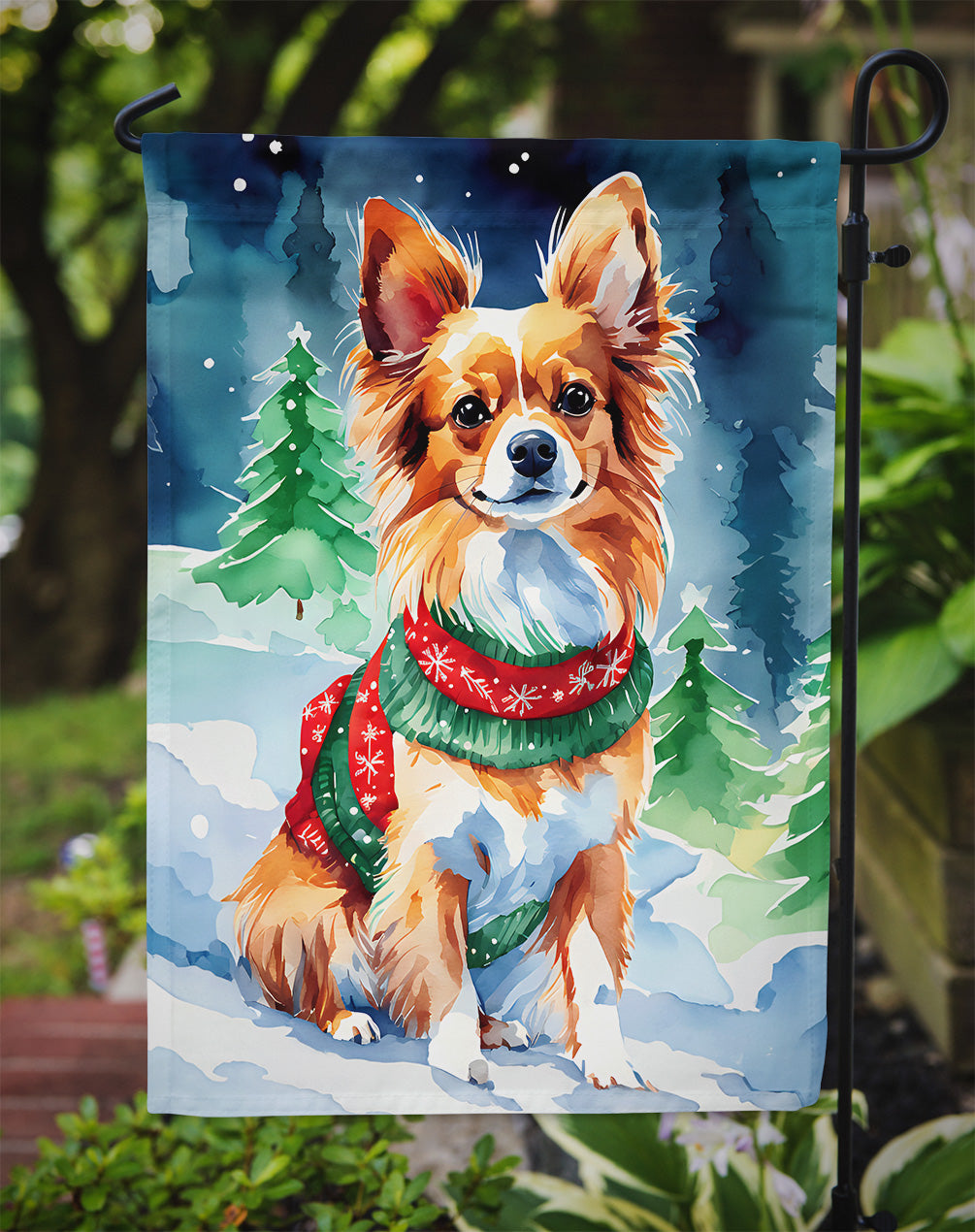Decorate your space with our Christmas Papillon artwork on a Garden Flag. Enhance the beauty of your garden, patio, or yard with Caroline's Treasures Decorative Garden Flag, proudly made in the USA. Crafted from two pieces of thick, double-sided polyester fabric, this 2-ply garden flag is designed to withstand various weather conditions, making it water-resistant and weatherproof. Featuring correctly readable words on both sides, this garden flag offers a delightful visual experience from any angle. With its heavier weight, it stands out among other garden flags, ensuring stability and durability even in wind, rain, and snow. Measuring approximately 11 1/4 inches by 15 1/2 inches, this flag allows you to personalize your outdoor decor. It comes with a 1 1/2-inch sleeve sewn in, allowing easy attachment to any standard garden flag stand or garden size porch hanger (sold separately). Make a statement in your outdoor space with Caroline's Treasures Decorative Garden Flag, a vibrant and high-quality flag that adds color and personality to your surroundings. Proudly made in the USA, it's a symbol of quality craftsmanship and attention to detail.