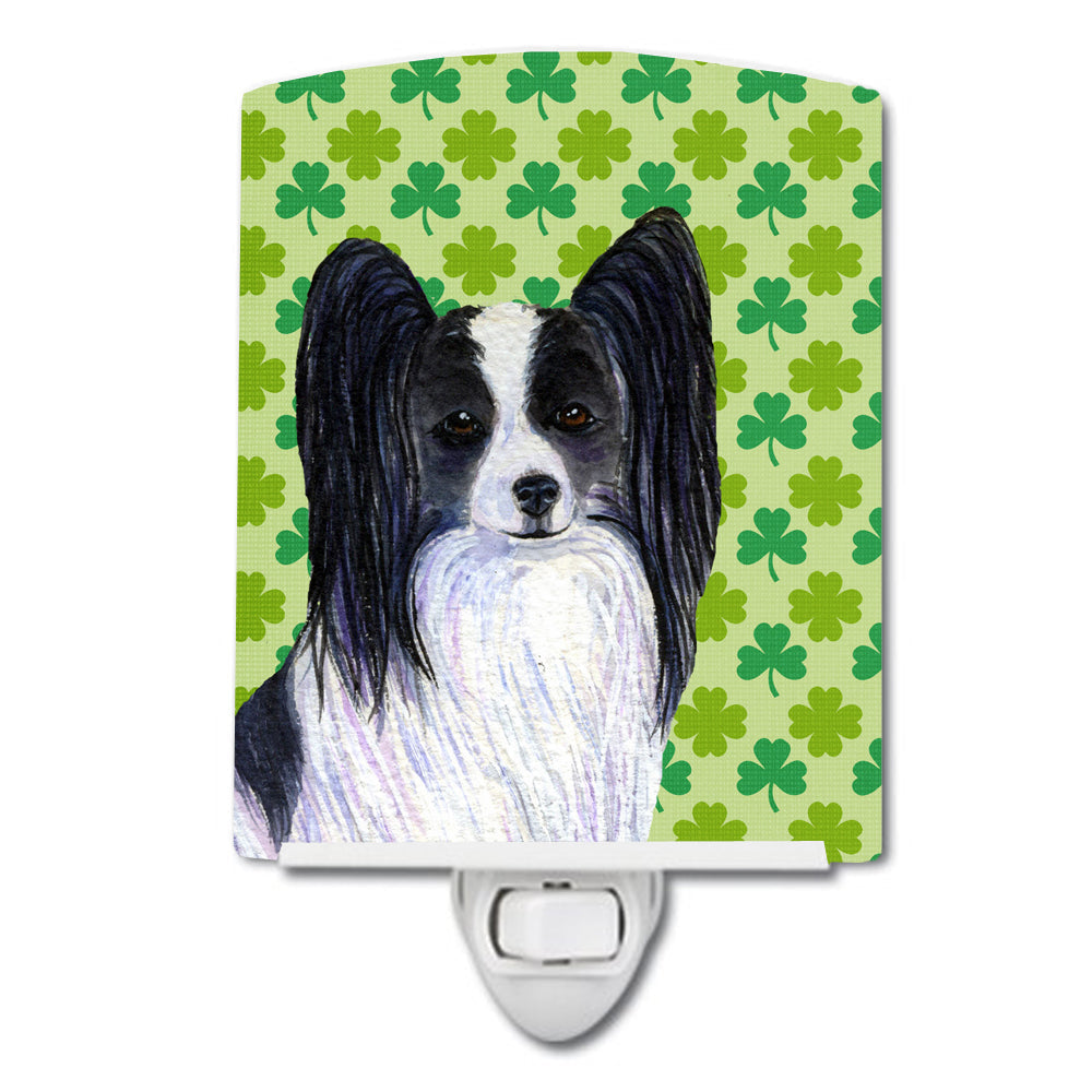 Decorate your space with our St Patrick's Day Papillon artwork on a Night Light. Introduce a splash of artistic flair and subtle illumination to your space with the Decorative Ceramic Night Light from Caroline's Treasures. Perfect for any room, this night light seamlessly blends functionality with an aesthetic appeal, offering a stylish solution to brighten up dark corners of your home or office. Boasting a six-inch high by four-inch wide ceramic tile at the front, it showcases vivid, full-color artwork from distinguished artists, transforming a simple utility into a vibrant art piece. The artwork is securely encased in a robust metal holder, ensuring durability and longevity. Two screws are provided to firmly affix the tile into the holder. The holder extends three inches deep, housing an included bulb that emits a soft, welcoming glow. This product meets all safety standards, as evidenced by its UL approval. Proudly made in the United States from imported components, this Decorative Ceramic Night Light is not just a functional device; it's a statement piece that enhances the ambiance of your surroundings.