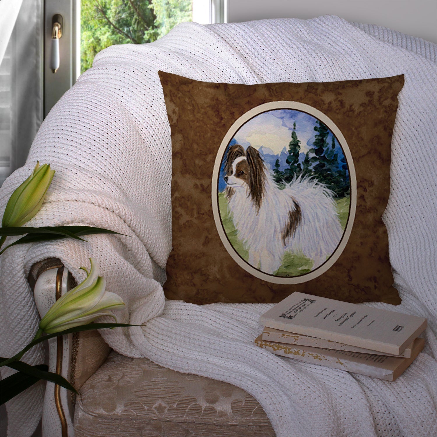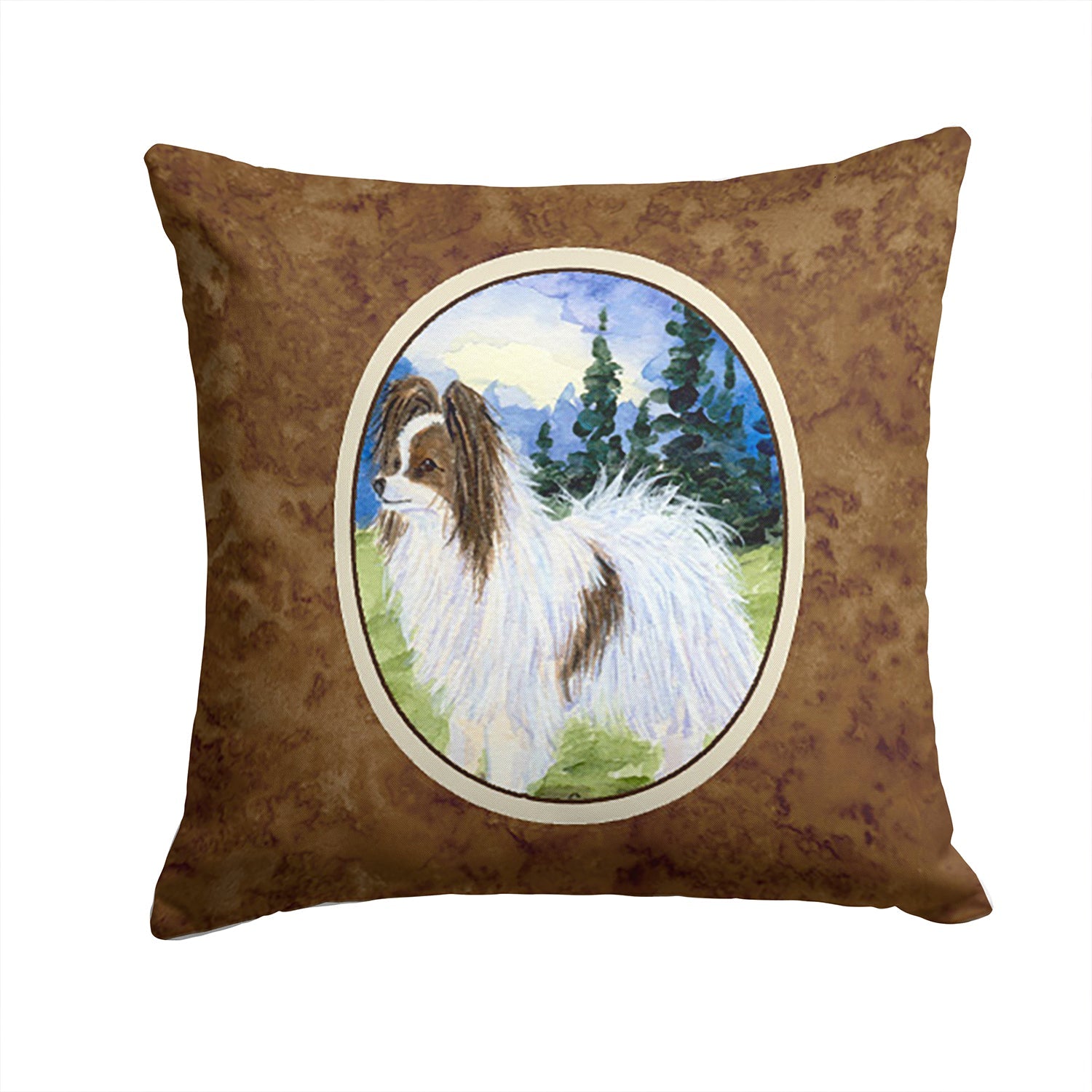 Decorate your space with our Papillon artwork on a Pillow. Add a touch of vibrancy and comfort to your outdoor seating with Caroline's Treasures Fabric Decorative Pillow. Measuring approximately 14 inches by 14 inches, this outdoor pillow is crafted to elevate the appeal of your patio furniture, infusing it with vivid color and artistic flair. The pillow includes a 100% Polyester Fabric sham filled with a quality pillow form to provide superior comfort. Innovatively made from our brand new material, specifically woven for its water resistance, this pillow is designed for durability. The soft canvas fabric offers versatility in use, fit for your indoor couch or your outdoor patio, porch, or veranda. The fabric is dyed with colorfast dyes built for resilience against weather conditions, ensuring the pillow retains its beauty over time. Constructed by sewing three fabric pieces to create a sham, the polyester insert is then nestled inside to form the pillow, resulting in an overstuffed pillow that maintains its shape. Both the sham and the pillow insert are proudly made in the United States. As the pillows are handcrafted, there may be minor variations in size, further enhancing their unique charm. Experience comfort in style with Caroline's Treasures Fabric Decorative Pillow.