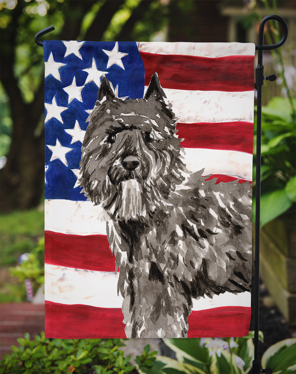 Decorate your space with our Bouvier des Flandres artwork on a Garden Flag. Enhance the beauty of your garden, patio, or yard with Caroline's Treasures Decorative Garden Flag, proudly made in the USA. Crafted from two pieces of thick, double-sided polyester fabric, this 2-ply garden flag is designed to withstand various weather conditions, making it water-resistant and weatherproof. Featuring correctly readable words on both sides, this garden flag offers a delightful visual experience from any angle. With its heavier weight, it stands out among other garden flags, ensuring stability and durability even in wind, rain, and snow. Measuring approximately 11 1/4 inches by 15 1/2 inches, this flag allows you to personalize your outdoor decor. It comes with a 1 1/2-inch sleeve sewn in, allowing easy attachment to any standard garden flag stand or garden size porch hanger (sold separately). Make a statement in your outdoor space with Caroline's Treasures Decorative Garden Flag, a vibrant and high-quality flag that adds color and personality to your surroundings. Proudly made in the USA, it's a symbol of quality craftsmanship and attention to detail.