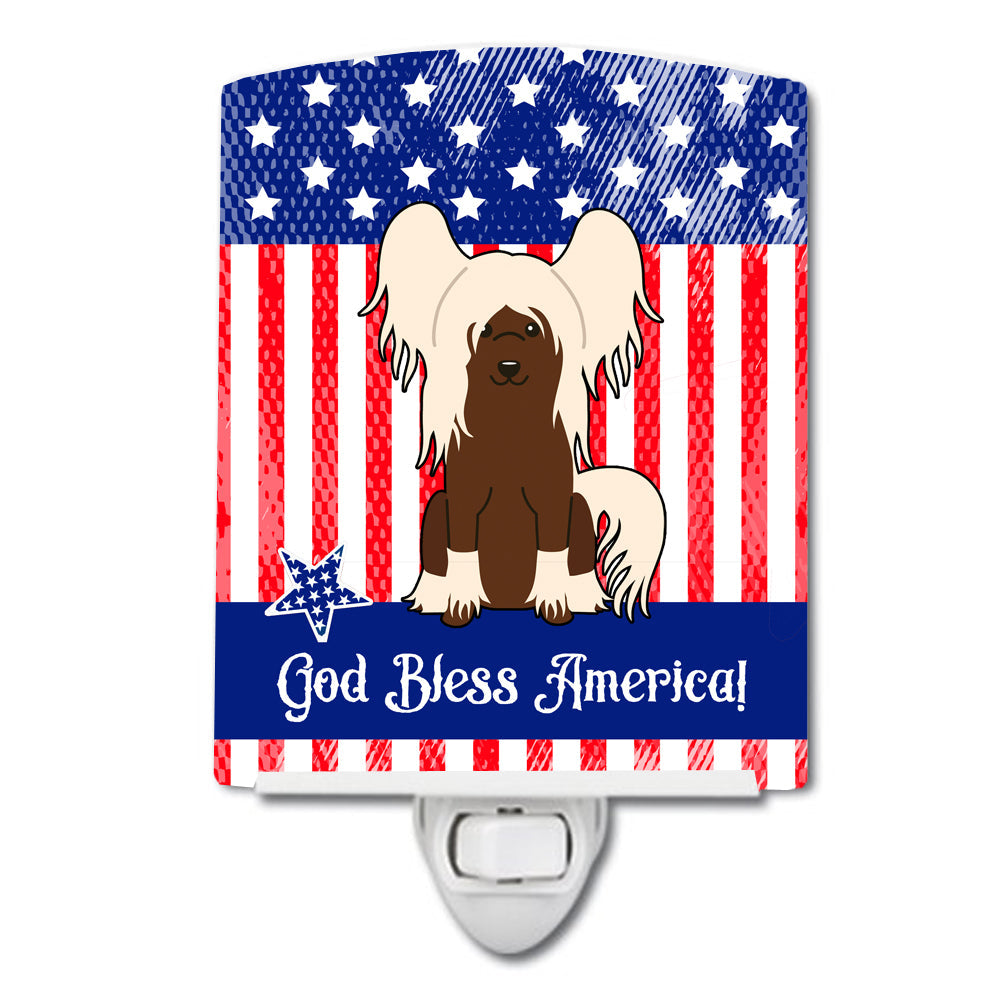 Decorate your space with our Chinese Crested artwork on a Night Light. Introduce a splash of artistic flair and subtle illumination to your space with the Decorative Ceramic Night Light from Caroline's Treasures. Perfect for any room, this night light seamlessly blends functionality with an aesthetic appeal, offering a stylish solution to brighten up dark corners of your home or office. Boasting a six-inch high by four-inch wide ceramic tile at the front, it showcases vivid, full-color artwork from distinguished artists, transforming a simple utility into a vibrant art piece. The artwork is securely encased in a robust metal holder, ensuring durability and longevity. Two screws are provided to firmly affix the tile into the holder. The holder extends three inches deep, housing an included bulb that emits a soft, welcoming glow. This product meets all safety standards, as evidenced by its UL approval. Proudly made in the United States from imported components, this Decorative Ceramic Night Light is not just a functional device; it's a statement piece that enhances the ambiance of your surroundings.