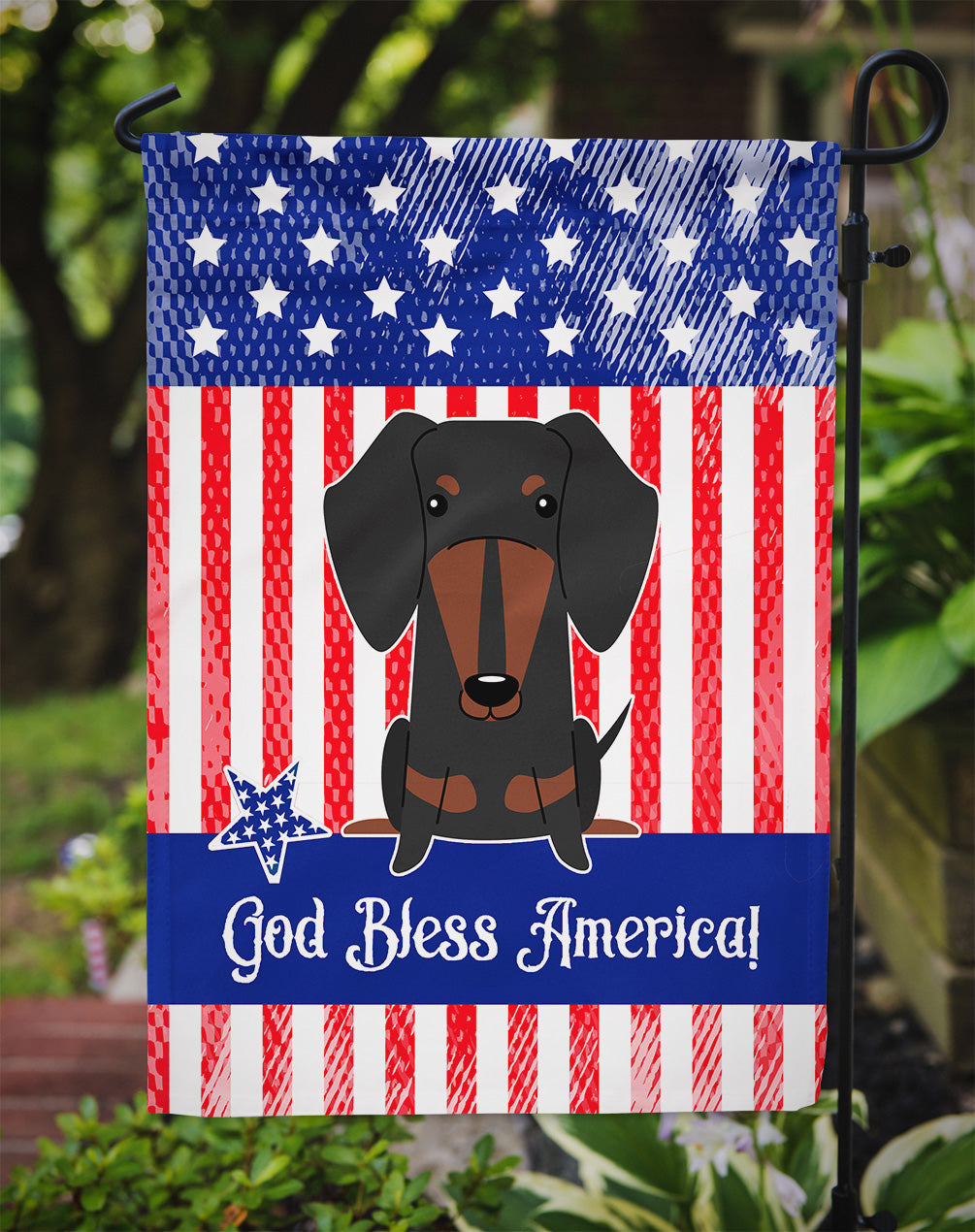 Patriotic USA Dachshund Black Tan Garden Flag - Outdoor Decorative Yard Flag BB3127GF