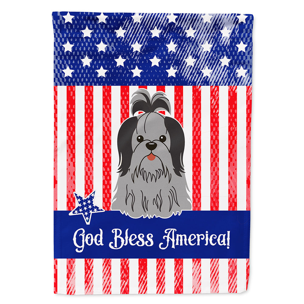 Patriotic USA Shih Tzu Black Silver Flag Canvas House Size