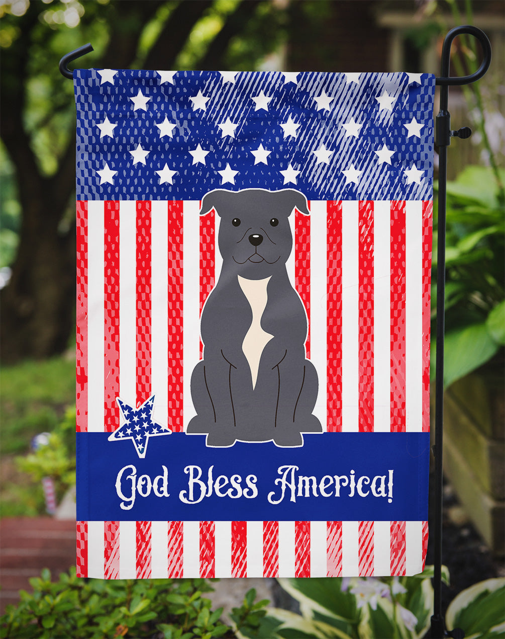 Patriotic USA Staffordshire Bull Terrier Blue Garden Flag - Outdoor Decorative Yard Flag BB3041GF