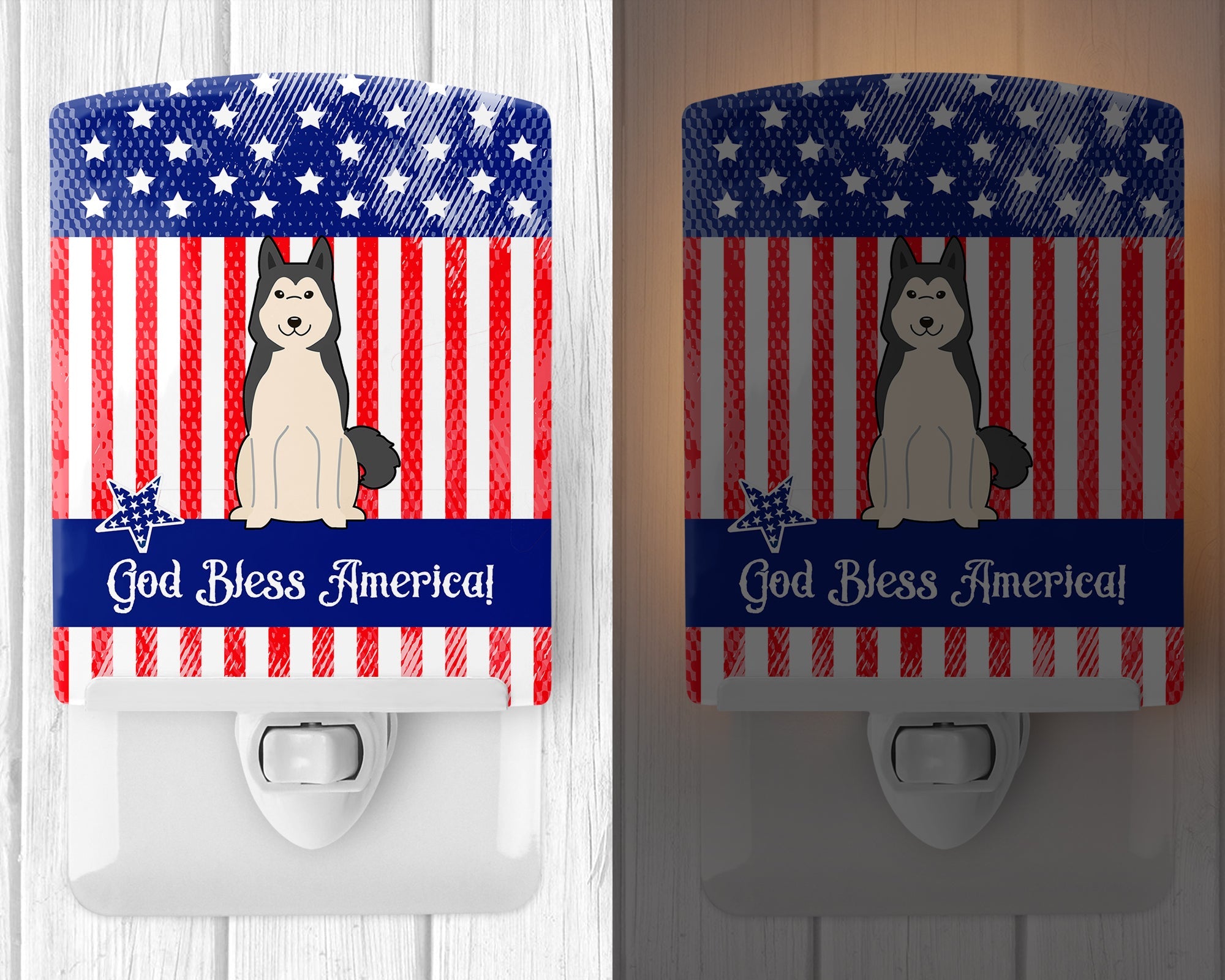 Decorate your space with our West Siberian Laika Spitz artwork on a Night Light. Introduce a splash of artistic flair and subtle illumination to your space with the Decorative Ceramic Night Light from Caroline's Treasures. Perfect for any room, this night light seamlessly blends functionality with an aesthetic appeal, offering a stylish solution to brighten up dark corners of your home or office. Boasting a six-inch high by four-inch wide ceramic tile at the front, it showcases vivid, full-color artwork from distinguished artists, transforming a simple utility into a vibrant art piece. The artwork is securely encased in a robust metal holder, ensuring durability and longevity. Two screws are provided to firmly affix the tile into the holder. The holder extends three inches deep, housing an included bulb that emits a soft, welcoming glow. This product meets all safety standards, as evidenced by its UL approval. Proudly made in the United States from imported components, this Decorative Ceramic Night Light is not just a functional device; it's a statement piece that enhances the ambiance of your surroundings.