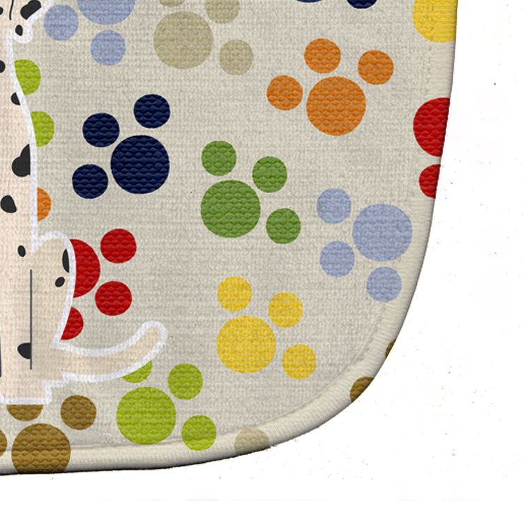 Decorate your space with our Dalmatian artwork on a Baby Bib. Cute and Functional. Dyed plush fabric baby bib with Velcro closure. Made of ultra-smooth micro-mink polyester that reverses to 100% cotton terry loops. Measures 10 inches x 13 inches, 0.8 oz. per piece. Edges are finished with binding. Machine washable and dry on low heat. Fade resistant and stain resistant. Top fabric gets even softer after the first wash.