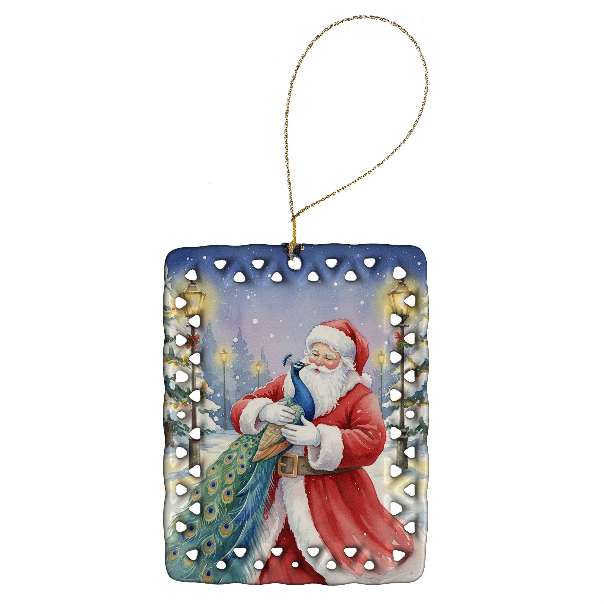 Peacock with Santa Claus Porcelain Ornament