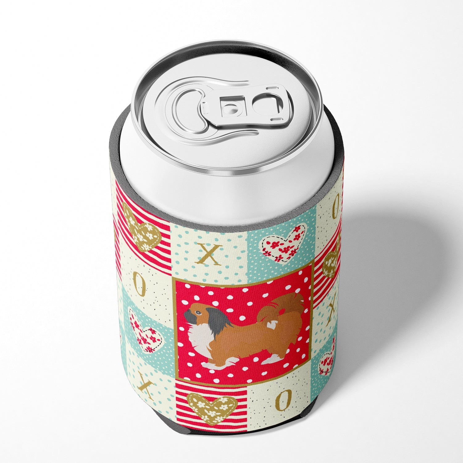 Decorate your space with our Valentine's Day Pekingese artwork on a Hugger. Introducing our Can or Bottle Hugger, a must-have accessory for your beverage enjoyment. Designed to perfectly fit any standard 12-ounce can, this can cooler is the ideal companion to keep your soda, beer, or any drink of your choice at the perfect temperature. Our can hugger is not just functional, it's a work of art. Featuring full-color artwork that's permanently dyed into the foam, this hugger promises a design that's fade-resistant and made to last, making your beverage stand out in style. The design isn't silk-screened, which ensures the vibrancy of the colors, offering you a long-lasting, appealing aesthetic. What sets our can hugger apart is its high-quality foam fabric, which is not only durable but also machine washable for easy maintenance. Whether you call it a huggie, can coolie, can cozie, or beer holder, this drink sleeve brings style and function together. Proudly designed, printed, and sewn in the USA, our Can or Bottle Hugger is an ideal addition to your beverage experience. Match it with one of our insulated coolers for a complete gift set, adding flair and convenience to your drink enjoyment.
