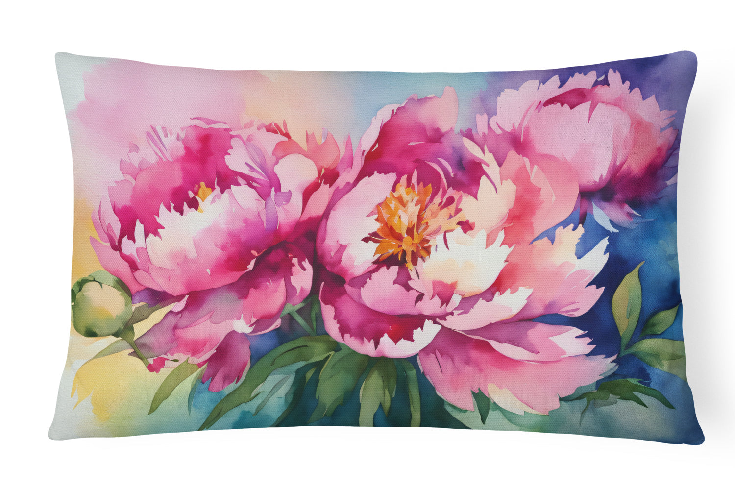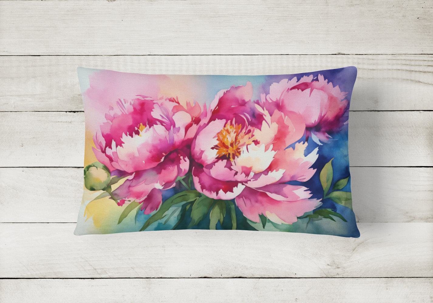Decorate your space with our Peonies artwork on a Pillow. Embrace the fusion of comfort and style with Caroline's Treasures Fabric Decorative Pillow. This 12x16 inch outdoor pillow is designed to complement your patio furniture, adding a splash of color and artistry to your outdoor setting. Constructed with a 100% Polyester Fabric pillow sham filled with a plush pillow form, this cushion is as comfortable as it is durable. Our outdoor pillow utilizes a novel fabric, meticulously woven for enhanced water resistance. This soft canvas material is equally suited for your indoor couch as well as outdoor settings such as the patio, porch, or veranda. To ensure enduring vibrance, we employ colorfast dyes resistant to fading even when subjected to weather elements. The making of this pillow involves the delicate sewing together of three fabric pieces to create a sham, into which a polyester insert is carefully placed. The result is an overstuffed pillow that tenaciously holds its shape. With both the sham and the pillow insert crafted in the United States, these handmade pillows are a testament to superior local craftsmanship. Note that as these pillows are handmade, sizes may slightly vary, enhancing their unique appeal. Enjoy comfort in style with Caroline's Treasures Fabric Decorative Pillow.