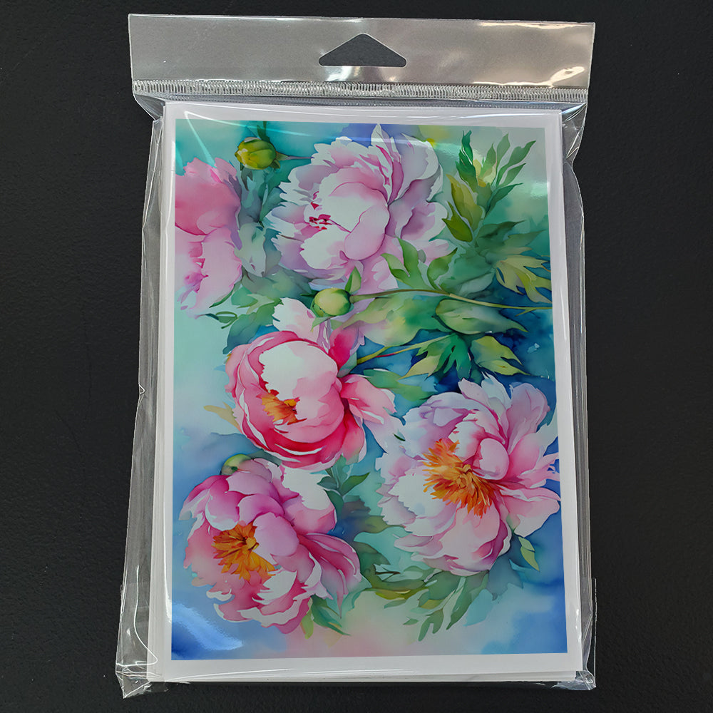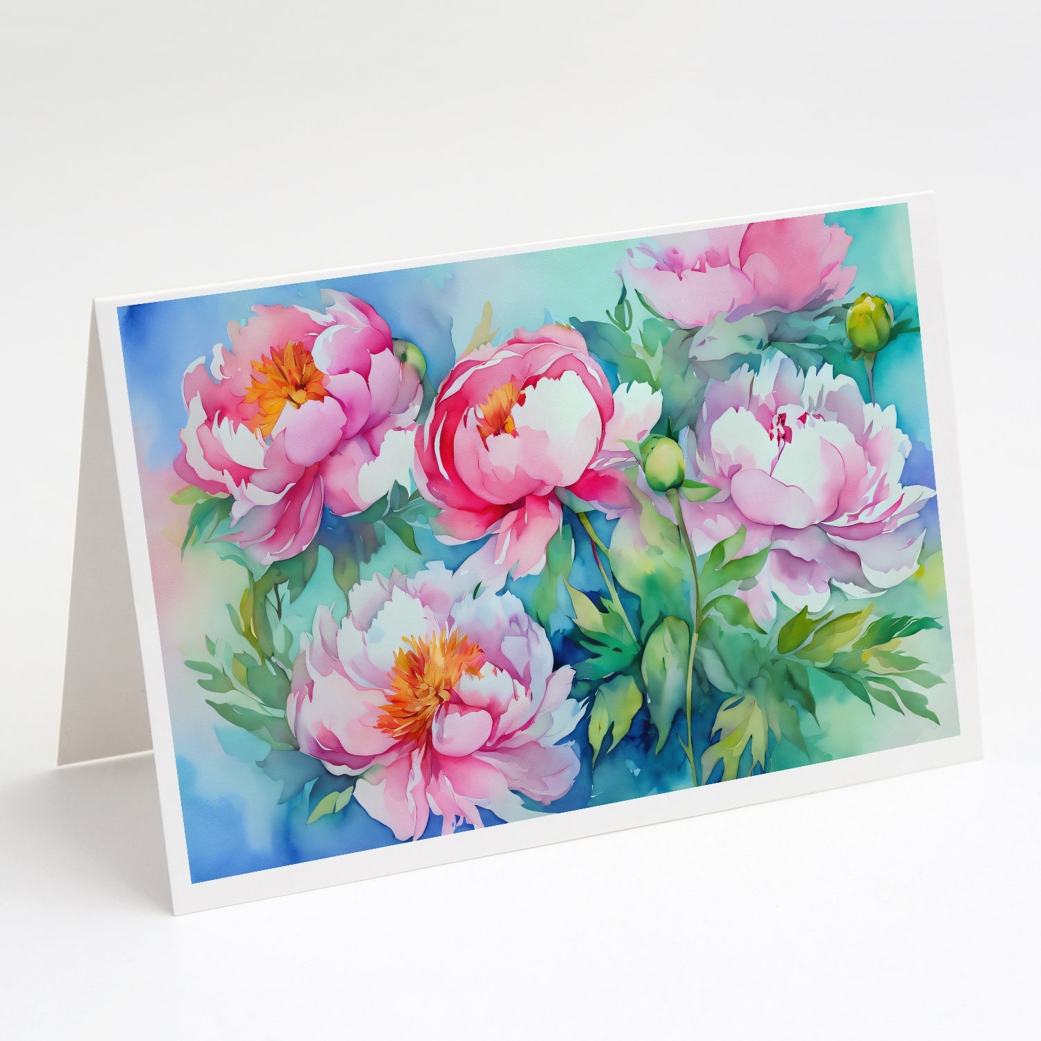Decorate your space with our Peonies artwork on a . Celebrate special moments with Caroline's Treasures Printed Greeting Card Pack. This pack includes eight beautifully folded 5x7 cards, accompanied by eight matching white envelopes. With blank interiors, these cards provide ample space for your personalized messages and heartfelt holiday greetings. Each card features captivating full-color artwork, meticulously printed in our facility on high-quality 80 lb cover stock or 216 GSM. The super smooth finish of the white cards enhances the visual impact of the artwork, creating a truly stunning presentation. Designed by our talented in-house artists or licensed artists, the artwork on these cards showcases their creativity and attention to detail. From vibrant illustrations to captivating designs, each card tells its own unique story. Whether it's for birthdays, anniversaries, holidays, or any special occasion, Caroline's Treasures Greeting Card Pack is the perfect way to convey your heartfelt sentiments. Share joy, love, and warm wishes with these exquisite cards and make every moment unforgettable.