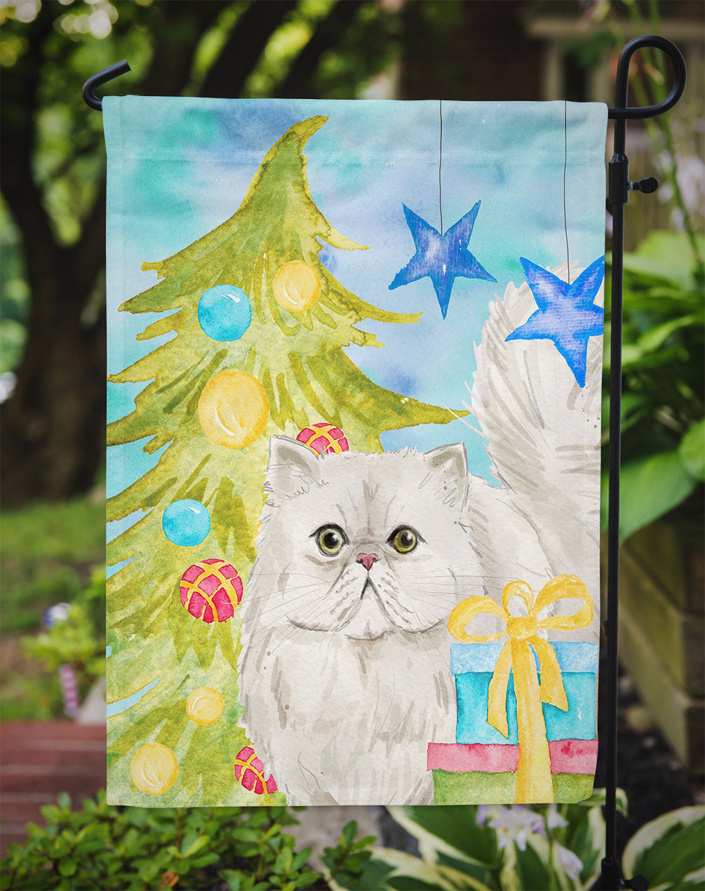 Decorate your space with our Christmas Persian artwork on a Garden Flag. Enhance the beauty of your garden, patio, or yard with Caroline's Treasures Decorative Garden Flag, proudly made in the USA. Crafted from two pieces of thick, double-sided polyester fabric, this 2-ply garden flag is designed to withstand various weather conditions, making it water-resistant and weatherproof. Featuring correctly readable words on both sides, this garden flag offers a delightful visual experience from any angle. With its heavier weight, it stands out among other garden flags, ensuring stability and durability even in wind, rain, and snow. Measuring approximately 11 1/4 inches by 15 1/2 inches, this flag allows you to personalize your outdoor decor. It comes with a 1 1/2-inch sleeve sewn in, allowing easy attachment to any standard garden flag stand or garden size porch hanger (sold separately). Make a statement in your outdoor space with Caroline's Treasures Decorative Garden Flag, a vibrant and high-quality flag that adds color and personality to your surroundings. Proudly made in the USA, it's a symbol of quality craftsmanship and attention to detail.