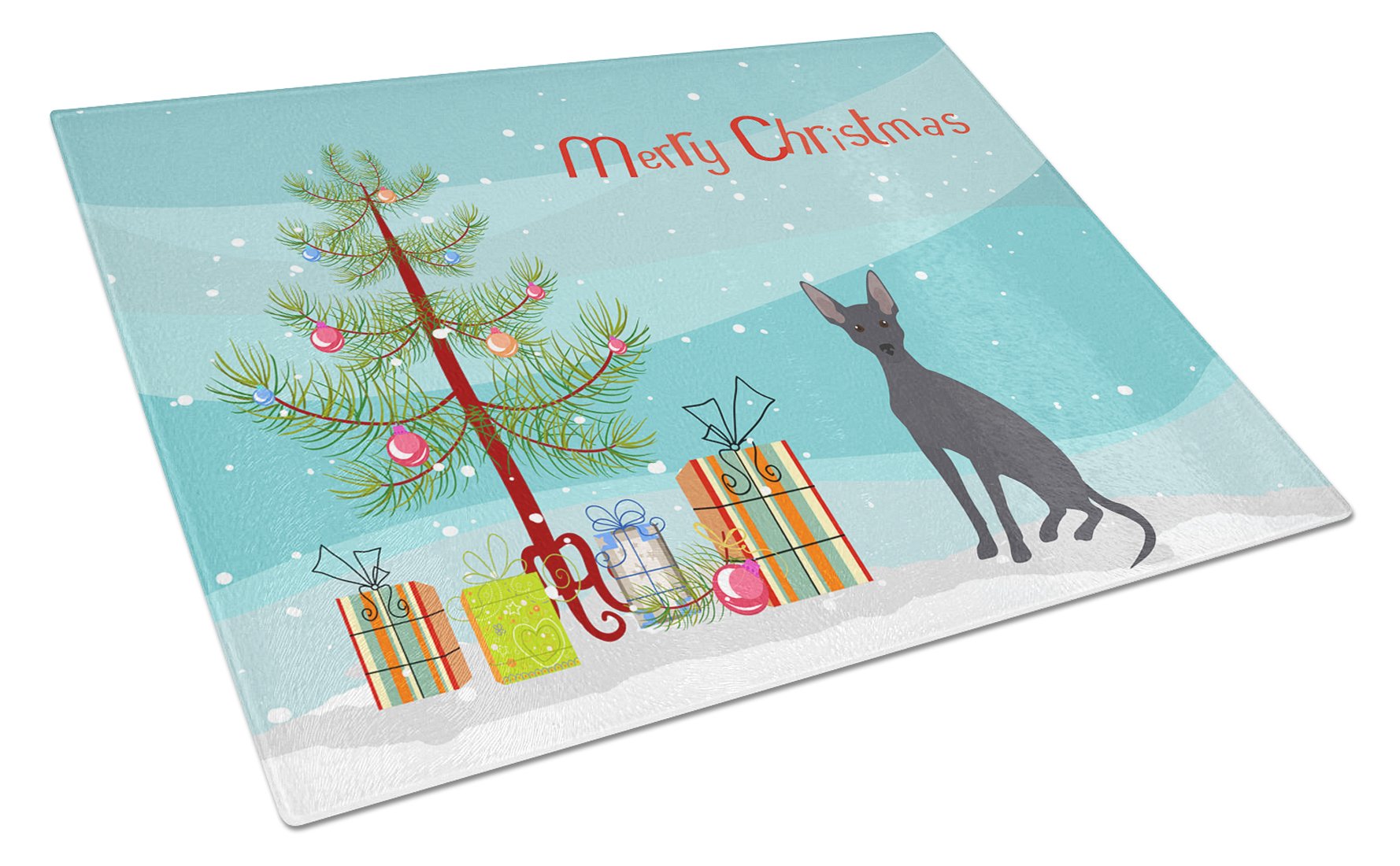 Decorate your space with our Christmas Peruvian Hairless Dog artwork on a Cutting Board. Introduce your kitchen to the vibrant, large Decorative Glass Cutting Board from Caroline's Treasures. Crafted from resilient tempered glass, this board is not only a utilitarian necessity but also a colorful art piece. With its generous dimensions of 15 inches in height and 12 inches in length, it offers ample space for all your cutting needs. Every piece showcases captivating artwork from distinguished artists, bringing an aesthetic edge to your kitchen. Beyond its attractive design, this cutting board ensures your countertop stays pristine and unscathed, owing to its heat-resistant properties. Engineered with user convenience in mind, it features non-skid feet for stability, and rounded corners for additional safety. Its robust construction renders it virtually unbreakable, guaranteeing longevity. The board comes with protective feet bumpers, maintaining its position during use. This product is recommended to be hand washed only. Proudly printed and assembled in the United States, this cutting board exemplifies superior craftsmanship. With Caroline's Treasures' Decorative Glass Cutting Board, you're investing in a blend of functionality and artistic flair.