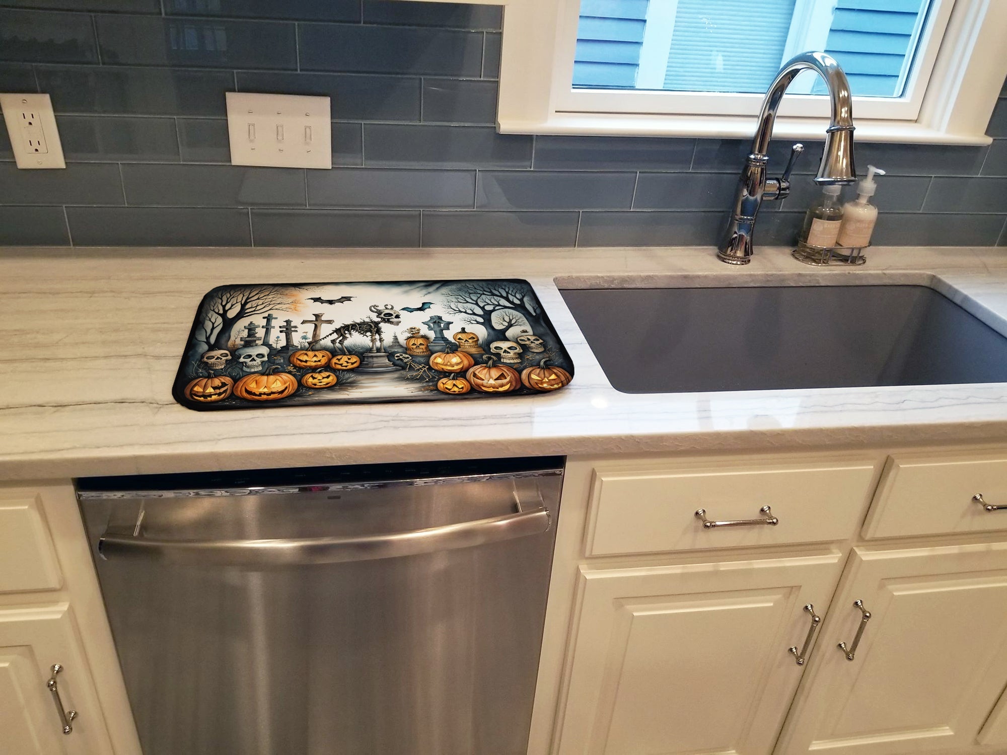 Pet Cemetery Spooky Halloween Dish Drying Mat
