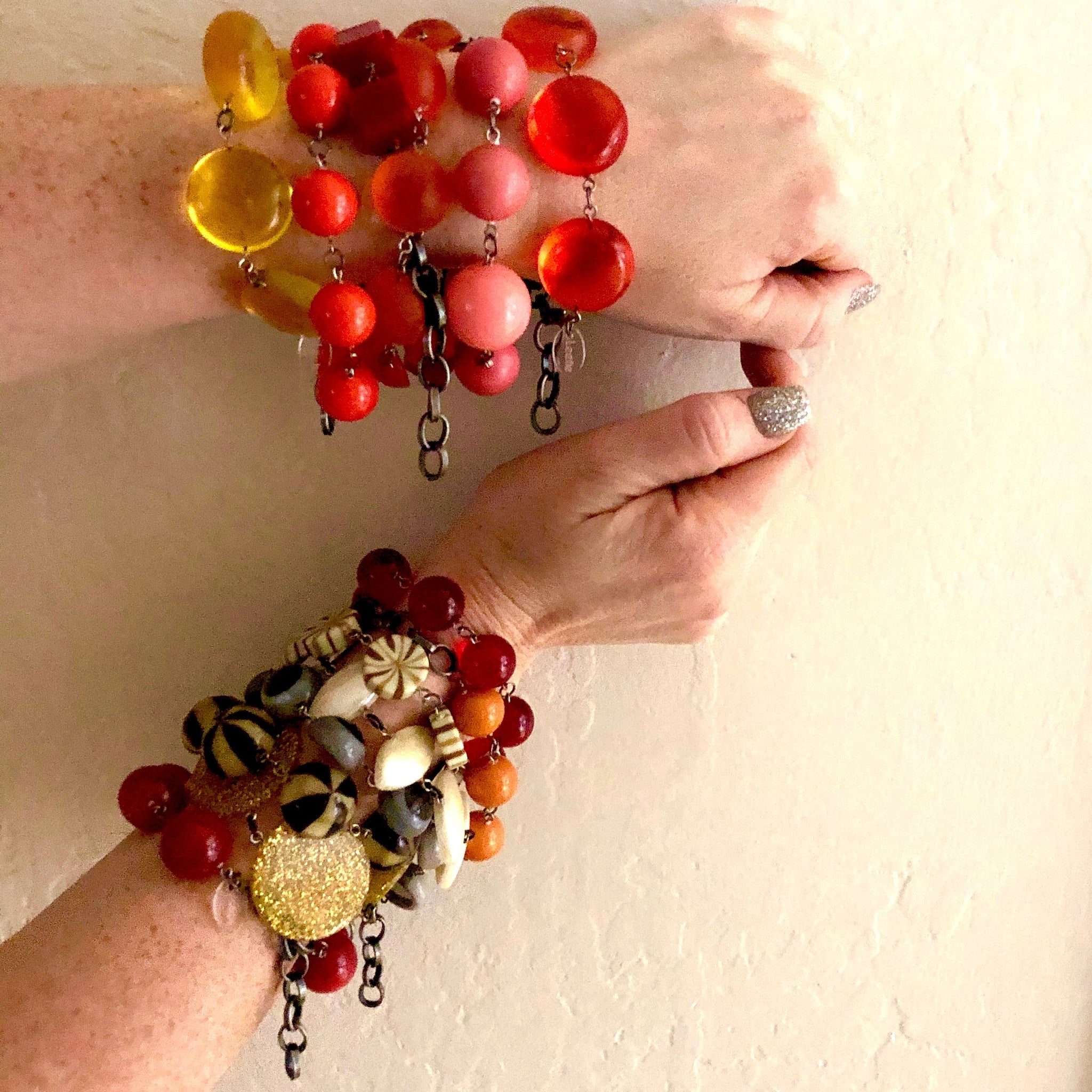 Because the beads we use are vintage & sometimes very limited, beads may vary slightly from the design shown but the look of the overall design & color way will be the same. Leetie bracelets look fantastic with others like them OR with your own collection of arm candy.
