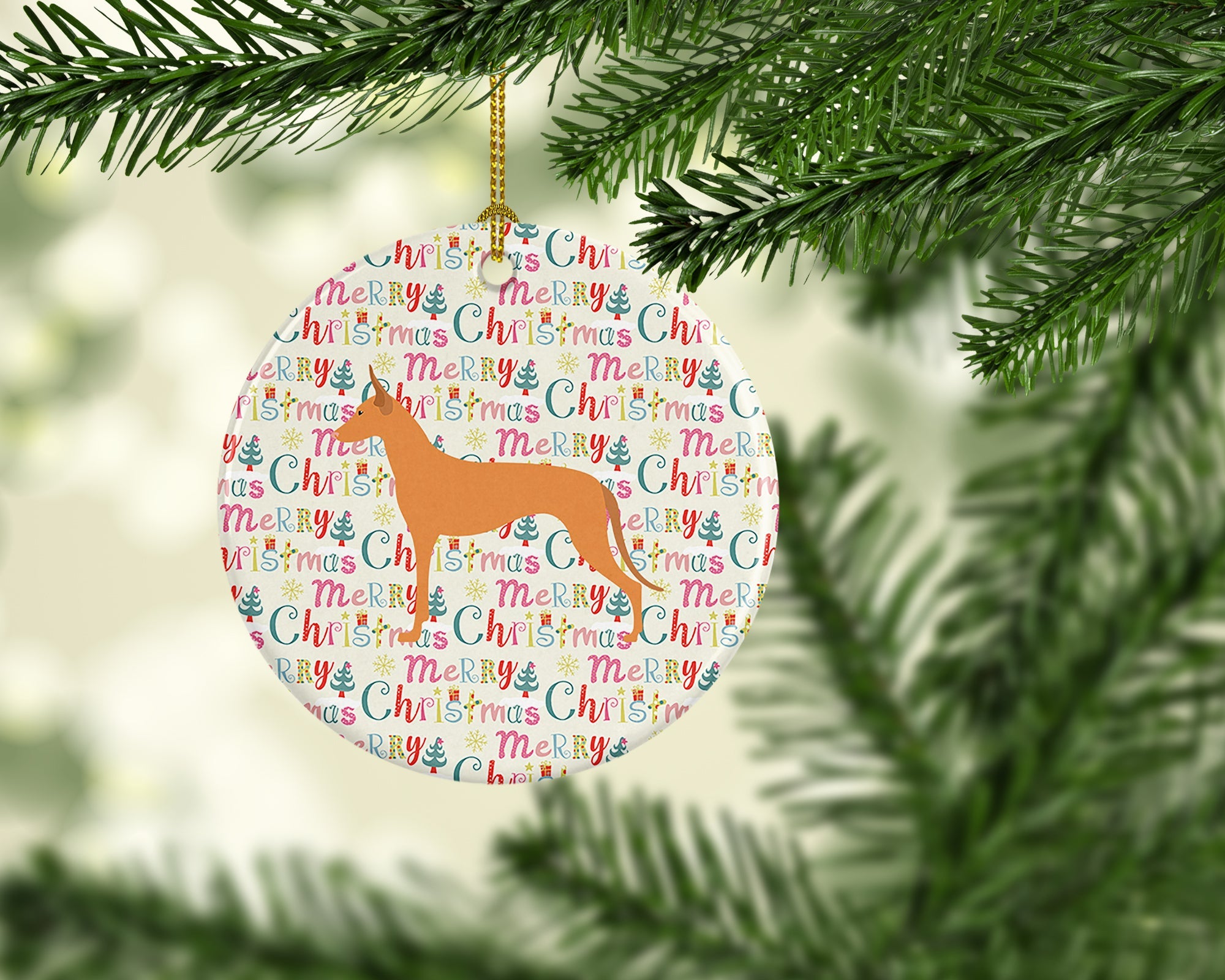 Pharaoh Hound Merry Christmas Ceramic Ornament