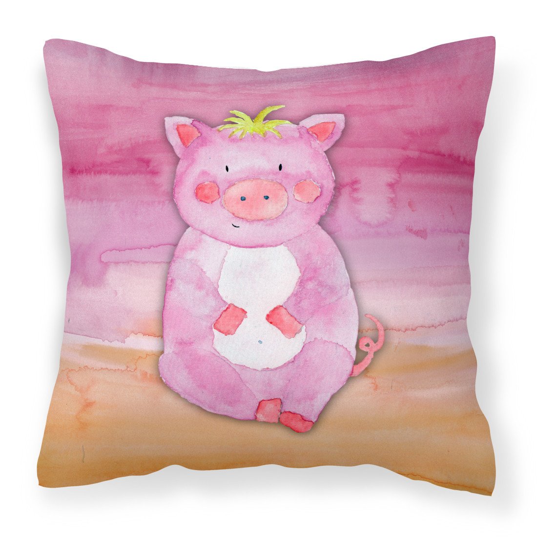 Decorate your space with our Pig artwork on a Pillow. Revitalize your outdoor or indoor living space with Caroline's Treasures 18x18 Fabric Decorative Pillow. With a generously sized dimension of approximately 18 inches by 18 inches, this pillow makes a comfortable and aesthetic addition to any seating area. Made from a unique, water-resistant material developed by Caroline's Treasures, the pillow sham is 100% polyester fabric that's durable and ready to weather any condition. Its vibrant, full-color artwork will not fade over time as it is dyed with color-fast dyes. Whether you place it on your patio furniture, porch, veranda, or indoor couch, its soft canvas fabric ensures a cozy experience. The pillow is handcrafted in the United States, featuring a sham created from three pieces of fabric and a polyester insert for enduring shape and overstuffed comfort. Despite being robustly built to endure the outdoors, it is as soft and snug as your favorite indoor cushions. Please note, as all our pillows are handmade, sizes may vary slightly, adding to the charm of this unique decorative item.