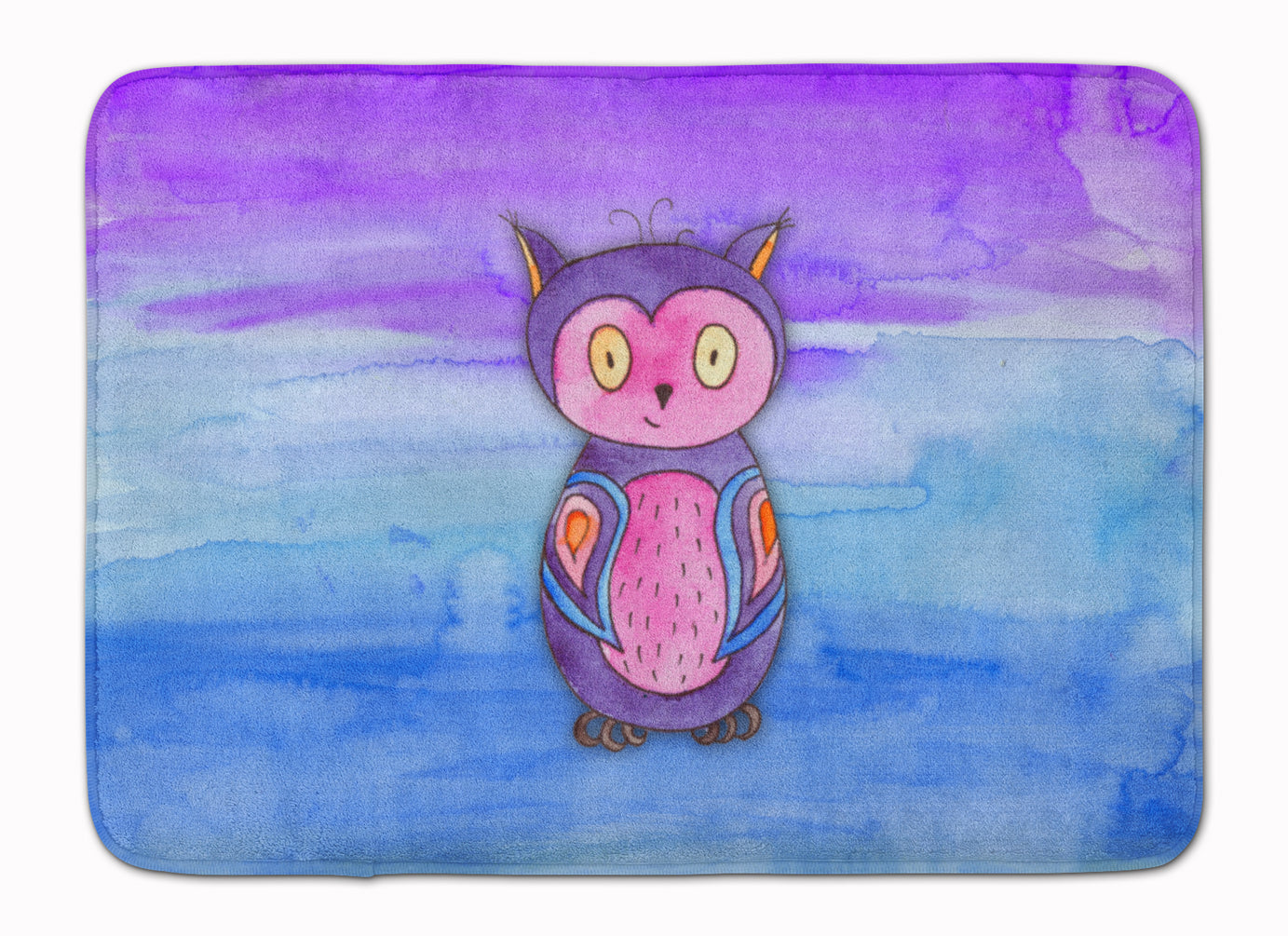 Pink and Purple Owl Watercolor Machine Washable Memory Foam Mat BB7427RUG