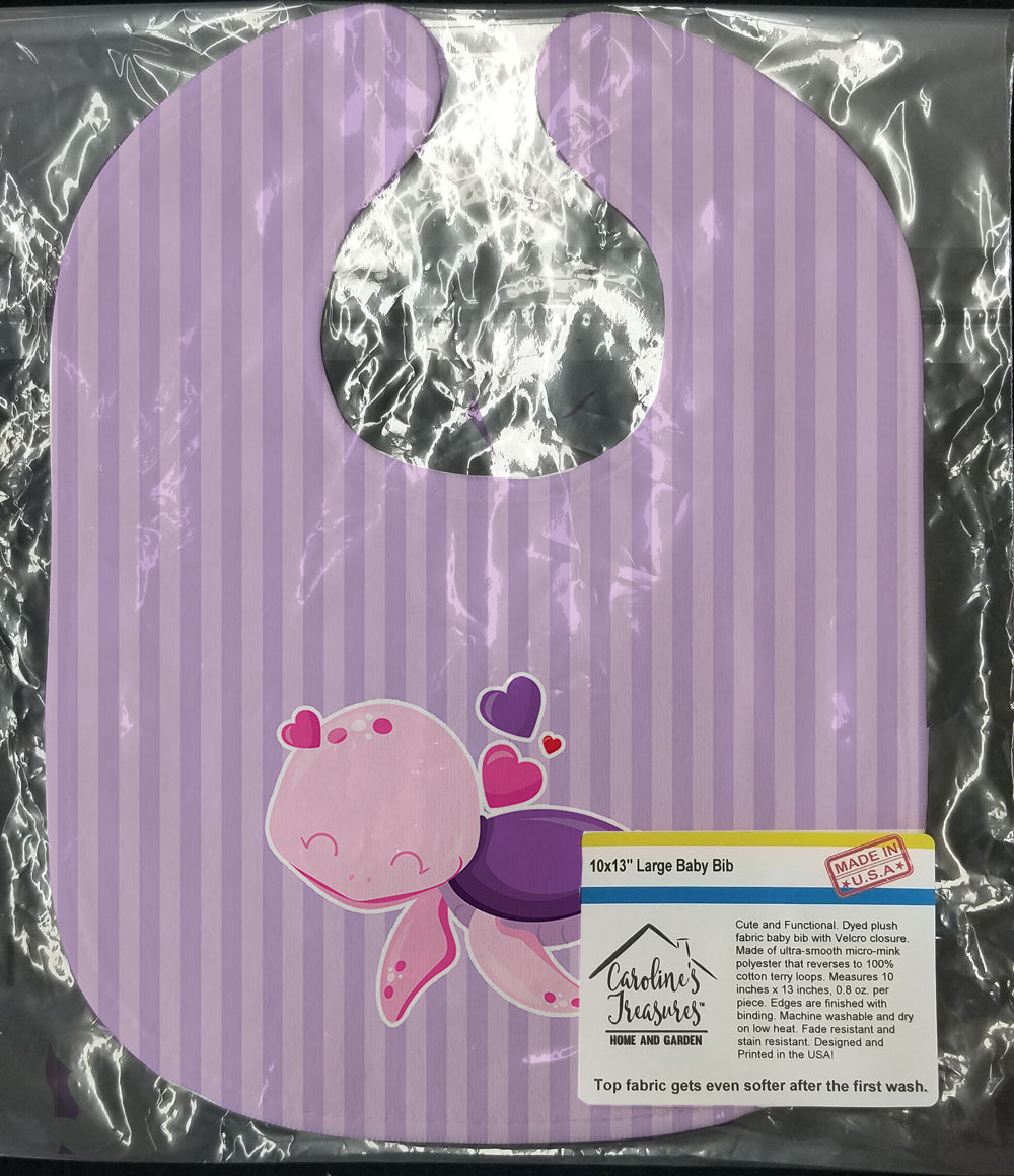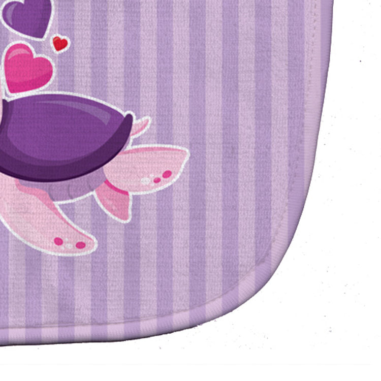 Decorate your space with our Turtle artwork on a Baby Bib. Cute and Functional. Dyed plush fabric baby bib with Velcro closure. Made of ultra-smooth micro-mink polyester that reverses to 100% cotton terry loops. Measures 10 inches x 13 inches, 0.8 oz. per piece. Edges are finished with binding. Machine washable and dry on low heat. Fade resistant and stain resistant. Top fabric gets even softer after the first wash.