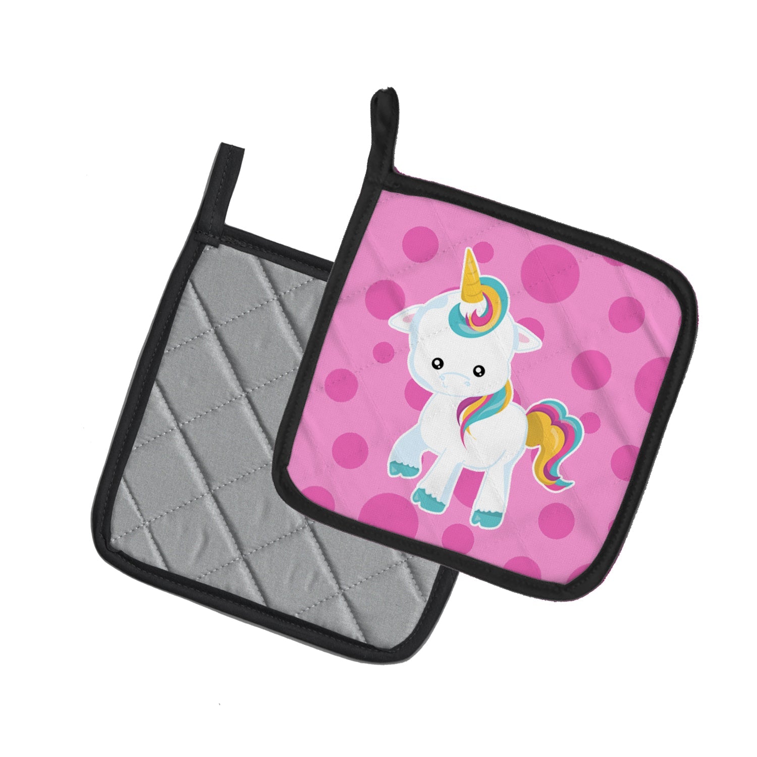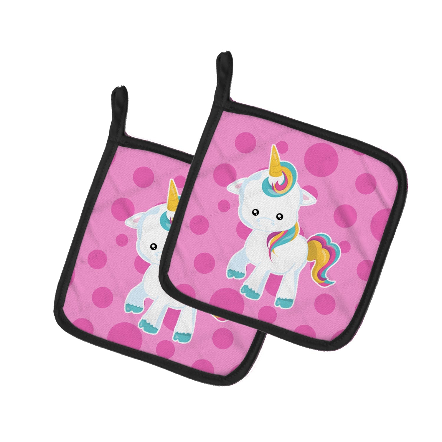 Pink Polkadot Unicorn Pot Holders - Set of 2 - Heat-Resistant Kitchen Essentials BB6805PTHD