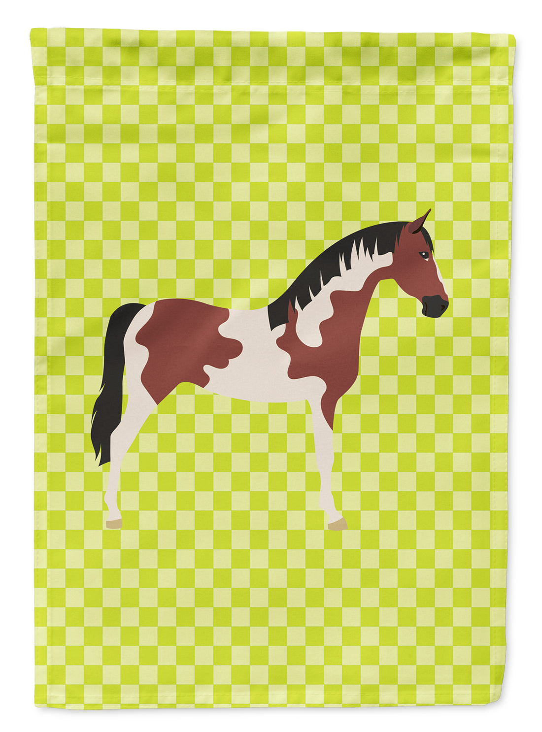 Decorate your space with our Pinto Horse artwork on a Garden Flag. Enhance the beauty of your garden, patio, or yard with Caroline's Treasures Decorative Garden Flag, proudly made in the USA. Crafted from two pieces of thick, double-sided polyester fabric, this 2-ply garden flag is designed to withstand various weather conditions, making it water-resistant and weatherproof. Featuring correctly readable words on both sides, this garden flag offers a delightful visual experience from any angle. With its heavier weight, it stands out among other garden flags, ensuring stability and durability even in wind, rain, and snow. Measuring approximately 11 1/4 inches by 15 1/2 inches, this flag allows you to personalize your outdoor decor. It comes with a 1 1/2-inch sleeve sewn in, allowing easy attachment to any standard garden flag stand or garden size porch hanger (sold separately). Make a statement in your outdoor space with Caroline's Treasures Decorative Garden Flag, a vibrant and high-quality flag that adds color and personality to your surroundings. Proudly made in the USA, it's a symbol of quality craftsmanship and attention to detail.