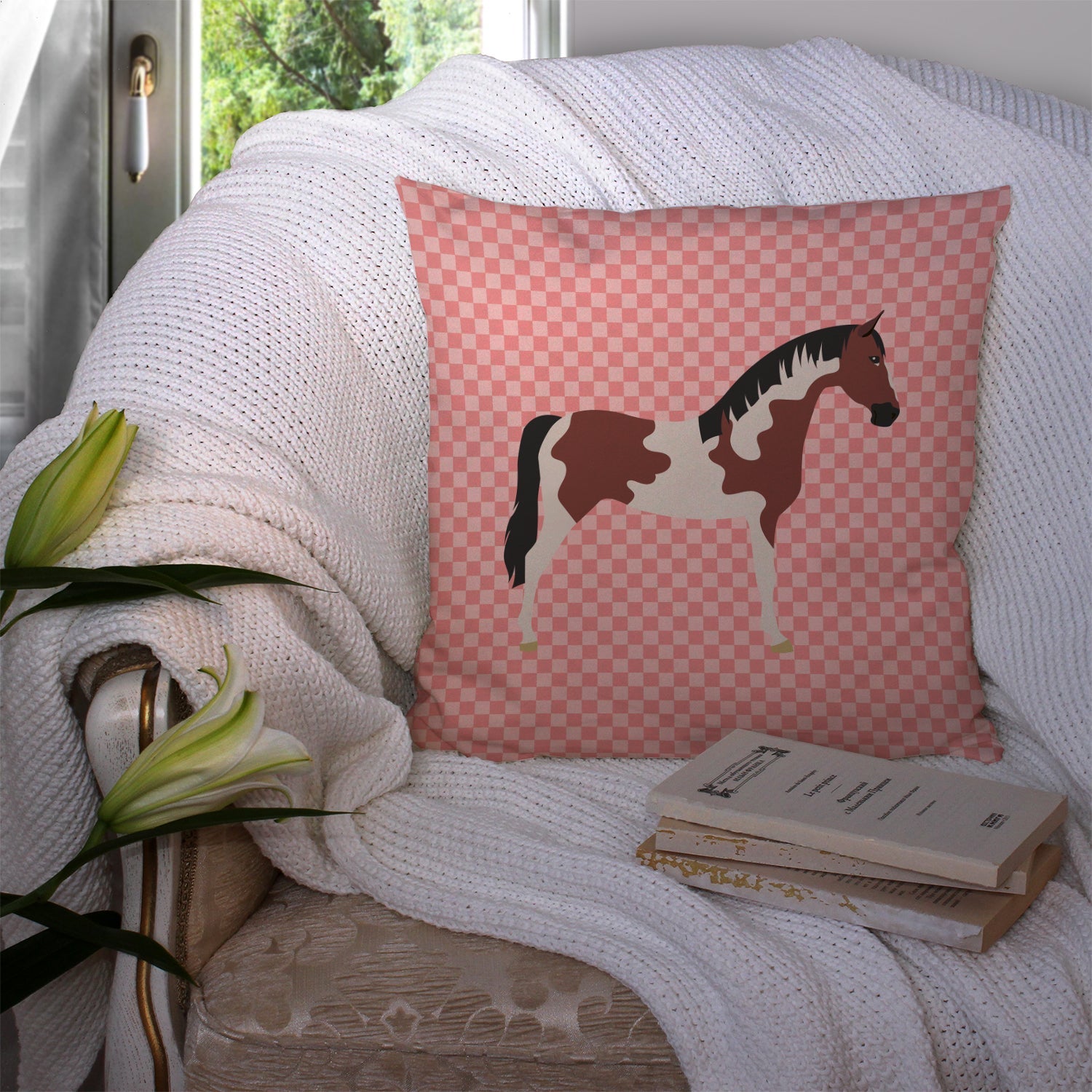 Decorate your space with our Pinto Horse artwork on a Pillow. Add a touch of vibrancy and comfort to your outdoor seating with Caroline's Treasures Fabric Decorative Pillow. Measuring approximately 14 inches by 14 inches, this outdoor pillow is crafted to elevate the appeal of your patio furniture, infusing it with vivid color and artistic flair. The pillow includes a 100% Polyester Fabric sham filled with a quality pillow form to provide superior comfort. Innovatively made from our brand new material, specifically woven for its water resistance, this pillow is designed for durability. The soft canvas fabric offers versatility in use, fit for your indoor couch or your outdoor patio, porch, or veranda. The fabric is dyed with colorfast dyes built for resilience against weather conditions, ensuring the pillow retains its beauty over time. Constructed by sewing three fabric pieces to create a sham, the polyester insert is then nestled inside to form the pillow, resulting in an overstuffed pillow that maintains its shape. Both the sham and the pillow insert are proudly made in the United States. As the pillows are handcrafted, there may be minor variations in size, further enhancing their unique charm. Experience comfort in style with Caroline's Treasures Fabric Decorative Pillow.