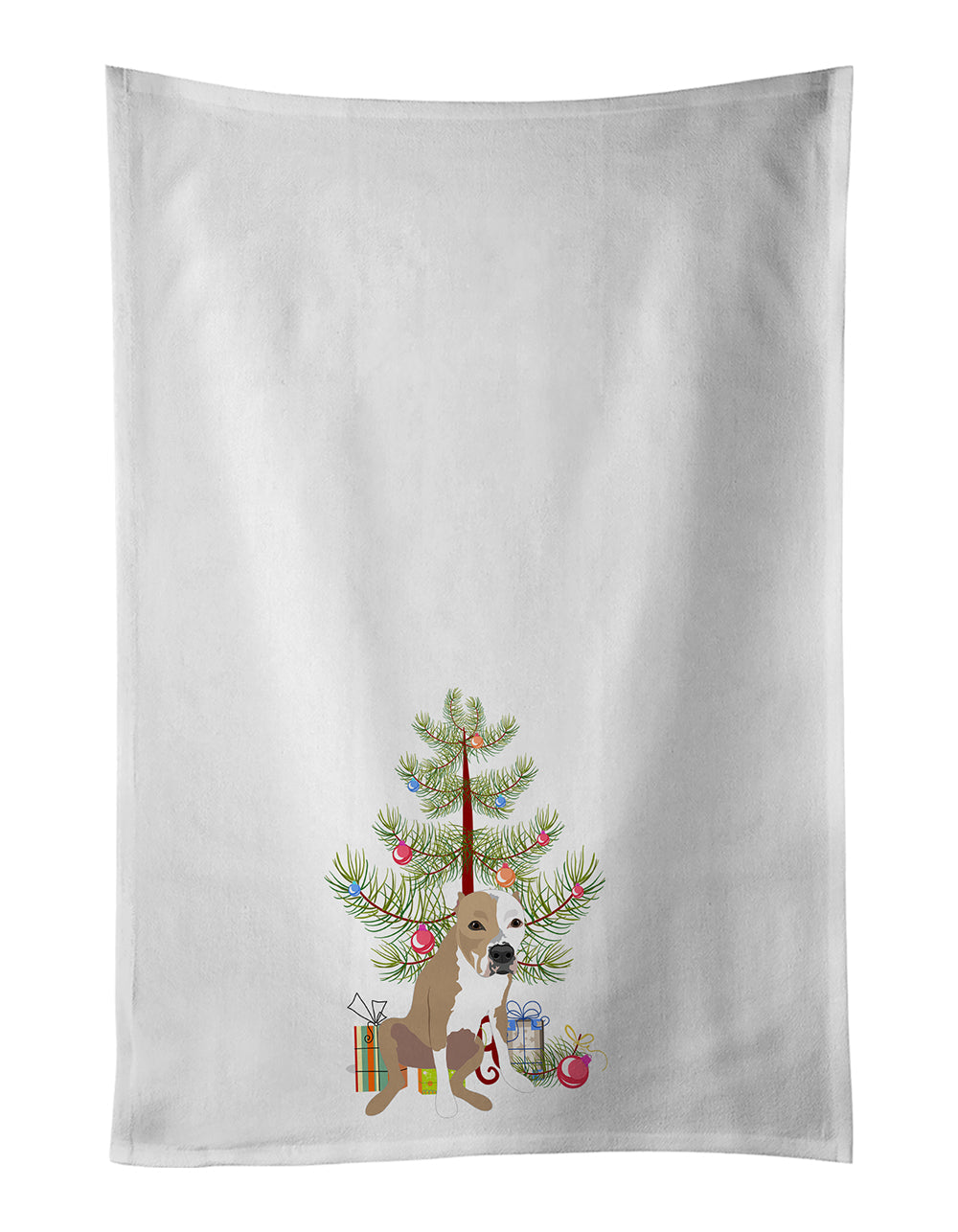 Decorate your space with our Christmas Pit Bull Terrier artwork on a Kitchen Cotton Towels. Spruce up your kitchen decor with Caroline's Treasures Decorative White Kitchen Towel Set. This set of two dish towels showcases beautiful artwork from one of our talented artists, making them both practical and visually appealing. These towels are crafted from 100% cotton, offering excellent absorbency and durability, making them ideal for any kitchen task. Each white towel measures 19 inches by 28 inches, providing ample coverage for drying dishes or wiping up spills. The standout feature of these towels is the full-color artwork design printed on each one. They can serve as a vibrant accent in your kitchen, turning a functional item into a delightful piece of decor. When it comes to care, these towels are machine washable in cold water and can be dried on low heat. Remember to always use a pressing cloth when pressing the design, and avoid using bleach on the decorated towel. The Decorative White Kitchen Towel Set makes a great gift or a stylish addition to your own kitchen.