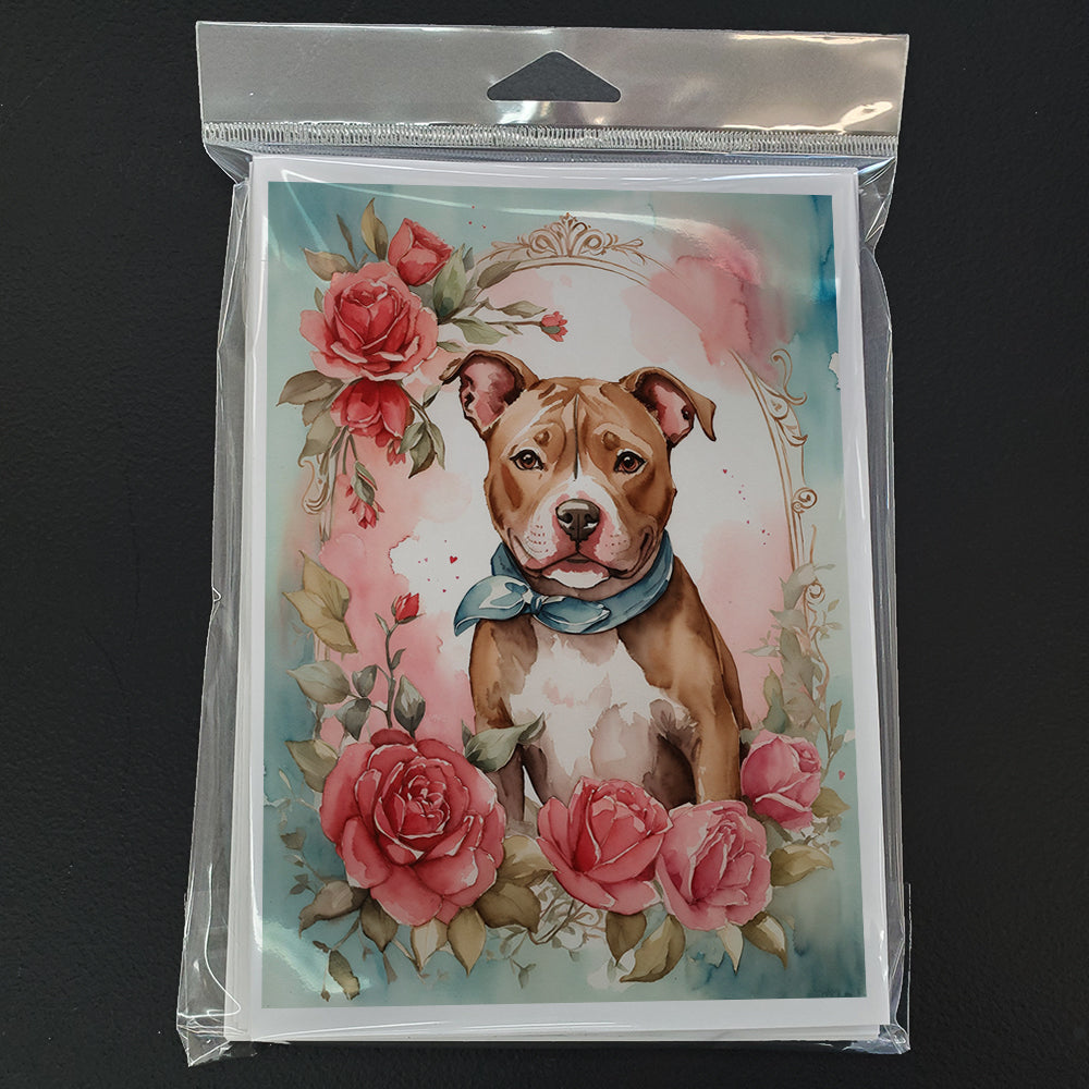 Decorate your space with our Valentine's Day Pit Bull Terrier artwork on a . Celebrate special moments with Caroline's Treasures Printed Greeting Card Pack. This pack includes eight beautifully folded 5x7 cards, accompanied by eight matching white envelopes. With blank interiors, these cards provide ample space for your personalized messages and heartfelt holiday greetings. Each card features captivating full-color artwork, meticulously printed in our facility on high-quality 80 lb cover stock or 216 GSM. The super smooth finish of the white cards enhances the visual impact of the artwork, creating a truly stunning presentation. Designed by our talented in-house artists or licensed artists, the artwork on these cards showcases their creativity and attention to detail. From vibrant illustrations to captivating designs, each card tells its own unique story. Whether it's for birthdays, anniversaries, holidays, or any special occasion, Caroline's Treasures Greeting Card Pack is the perfect way to convey your heartfelt sentiments. Share joy, love, and warm wishes with these exquisite cards and make every moment unforgettable.
