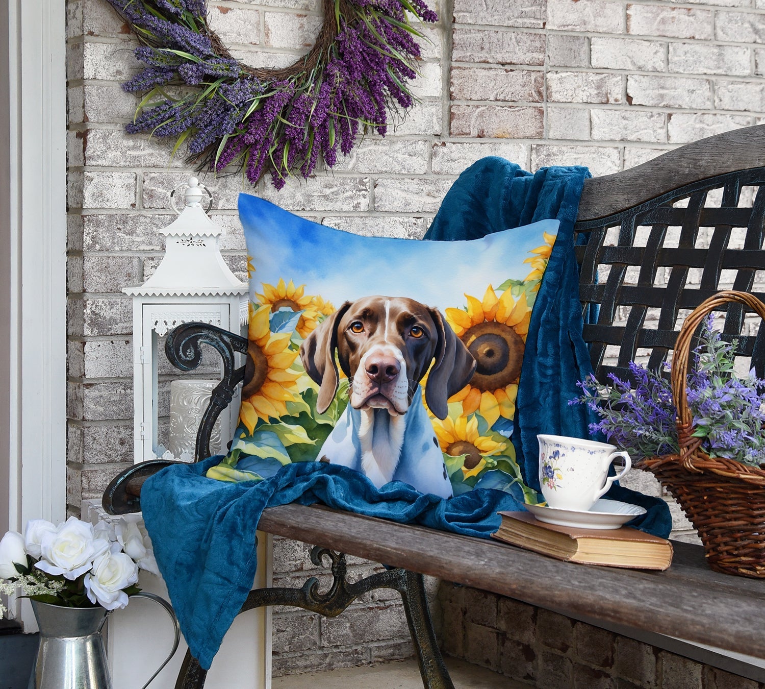 Decorate your space with our Pointer artwork on a Pillow. Bring a bit of Summer into your home with a Summer Pillow. Revitalize your outdoor or indoor living space with Caroline's Treasures 18x18 Fabric Decorative Pillow. With a generously sized dimension of approximately 18 inches by 18 inches, this pillow makes a comfortable and aesthetic addition to any seating area. Made from a unique, water-resistant material developed by Caroline's Treasures, the pillow sham is 100% polyester fabric that's durable and ready to weather any condition. Its vibrant, full-color artwork will not fade over time as it is dyed with color-fast dyes. Whether you place it on your patio furniture, porch, veranda, or indoor couch, its soft canvas fabric ensures a cozy experience. The pillow is handcrafted in the United States, featuring a sham created from three pieces of fabric and a polyester insert for enduring shape and overstuffed comfort. Despite being robustly built to endure the outdoors, it is as soft and snug as your favorite indoor cushions. Please note, as all our pillows are handmade, sizes may vary slightly, adding to the charm of this unique decorative item.