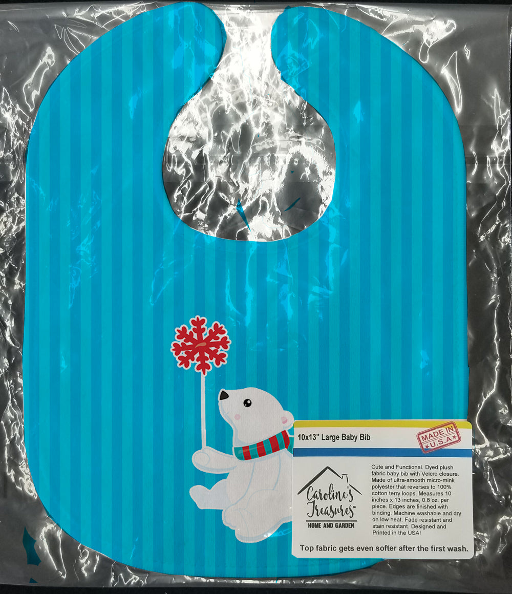 Decorate your space with our Polar Bear artwork on a Baby Bib. Cute and Functional. Dyed plush fabric baby bib with Velcro closure. Made of ultra-smooth micro-mink polyester that reverses to 100% cotton terry loops. Measures 10 inches x 13 inches, 0.8 oz. per piece. Edges are finished with binding. Machine washable and dry on low heat. Fade resistant and stain resistant. Top fabric gets even softer after the first wash.