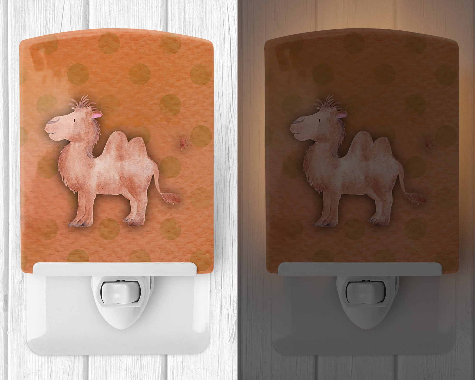 Decorate your space with our Camel artwork on a Night Light. Introduce a splash of artistic flair and subtle illumination to your space with the Decorative Ceramic Night Light from Caroline's Treasures. Perfect for any room, this night light seamlessly blends functionality with an aesthetic appeal, offering a stylish solution to brighten up dark corners of your home or office. Boasting a six-inch high by four-inch wide ceramic tile at the front, it showcases vivid, full-color artwork from distinguished artists, transforming a simple utility into a vibrant art piece. The artwork is securely encased in a robust metal holder, ensuring durability and longevity. Two screws are provided to firmly affix the tile into the holder. The holder extends three inches deep, housing an included bulb that emits a soft, welcoming glow. This product meets all safety standards, as evidenced by its UL approval. Proudly made in the United States from imported components, this Decorative Ceramic Night Light is not just a functional device; it's a statement piece that enhances the ambiance of your surroundings.