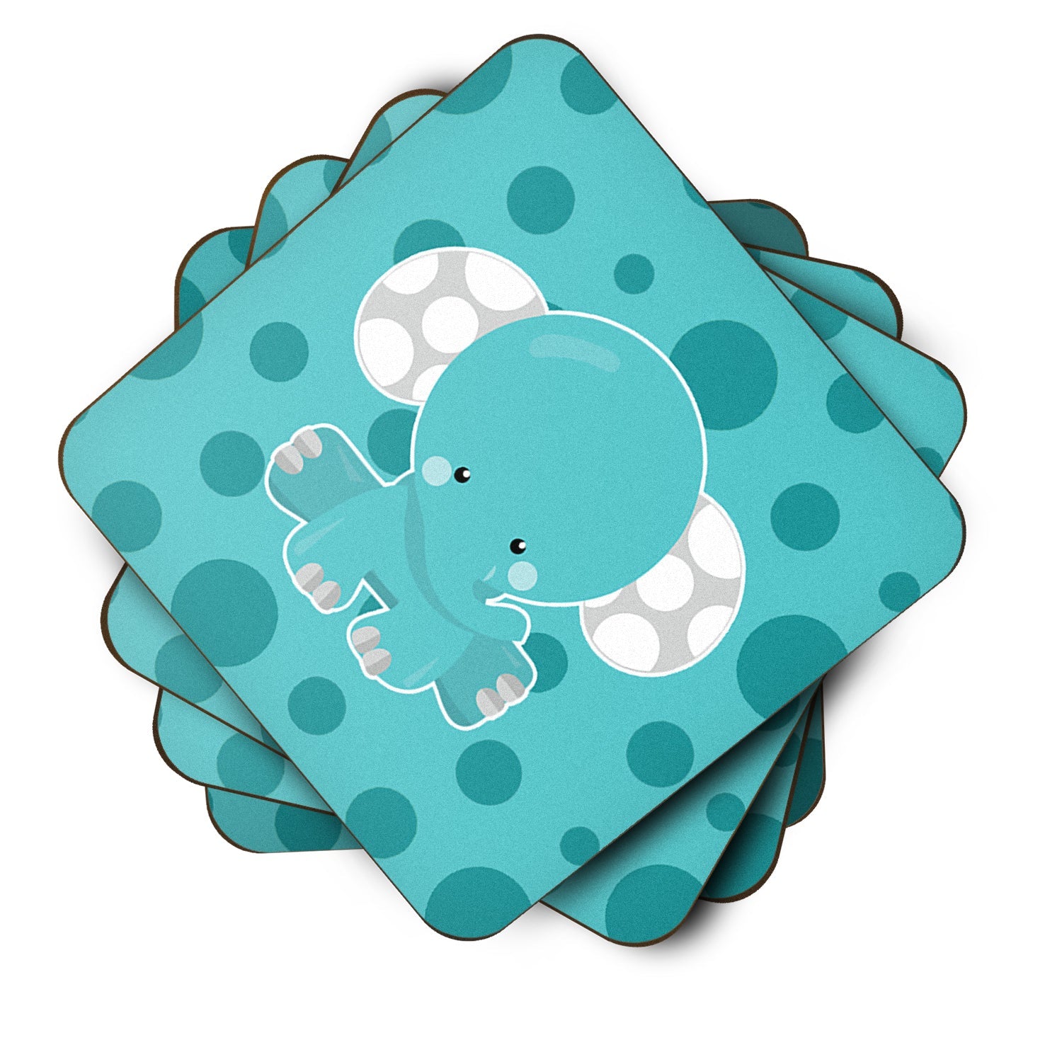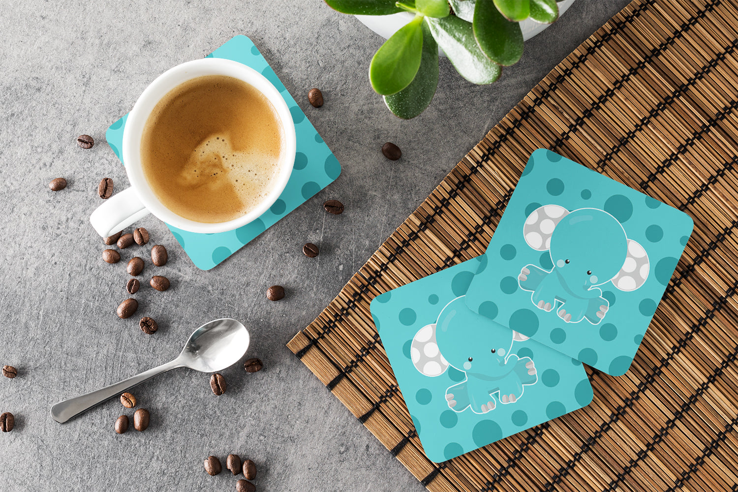 Decorate your space with our Elephant artwork on a Coaster set. Presenting our Set of 4 Foam Coasters, a stylish and practical addition to your table setting. Each square coaster, measuring 3 1/2 inches by 3 1/2 inches, is perfectly sized to accommodate various drinkware, from coffee mugs to tumblers. These coasters stand out with their full-color artwork, permanently dyed onto the material for a vibrant and fade-resistant finish. They're not just functional, they're a fashionable statement, adding a touch of flair to any gathering or event. Our foam coasters serve a dual purpose - they protect your table from water stains and are perfect for both hot and cold drinks. The material used is similar to that of our high-quality mouse pads, ensuring durability and heat resistance. These coasters are easy to maintain - simply wash them in the top of your dishwasher and lay flat to dry. The design won't come off, ensuring they retain their vivid colors for years. Pair them with one of our insulated coolers or huggers for a cohesive, thoughtful gift set. Enhance your beverage experience with our Set of 4 Foam Coasters.