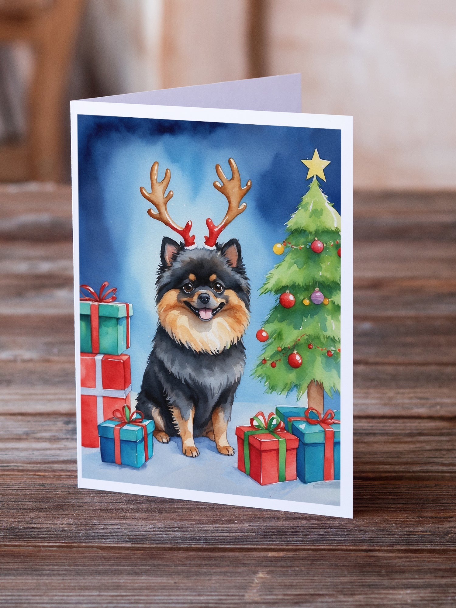 Greeting Cards Pack of 8 featuring breed specific Pomeranian artwork. Celebrate Christmas with this Christmas . Celebrate special moments with Caroline's Treasures Printed Greeting Card Pack. This pack includes eight beautifully folded 5x7 cards, accompanied by eight matching white envelopes. With blank interiors, these cards provide ample space for your personalized messages and heartfelt holiday greetings. Each card features captivating full-color artwork, meticulously printed in our facility on high-quality 80 lb cover stock or 216 GSM. The super smooth finish of the white cards enhances the visual impact of the artwork, creating a truly stunning presentation. Designed by our talented in-house artists or licensed artists, the artwork on these cards showcases their creativity and attention to detail. From vibrant illustrations to captivating designs, each card tells its own unique story. Whether it's for birthdays, anniversaries, holidays, or any special occasion, Caroline's Treasures Greeting Card Pack is the perfect way to convey your heartfelt sentiments. Share joy, love, and warm wishes with these exquisite cards and make every moment unforgettable.