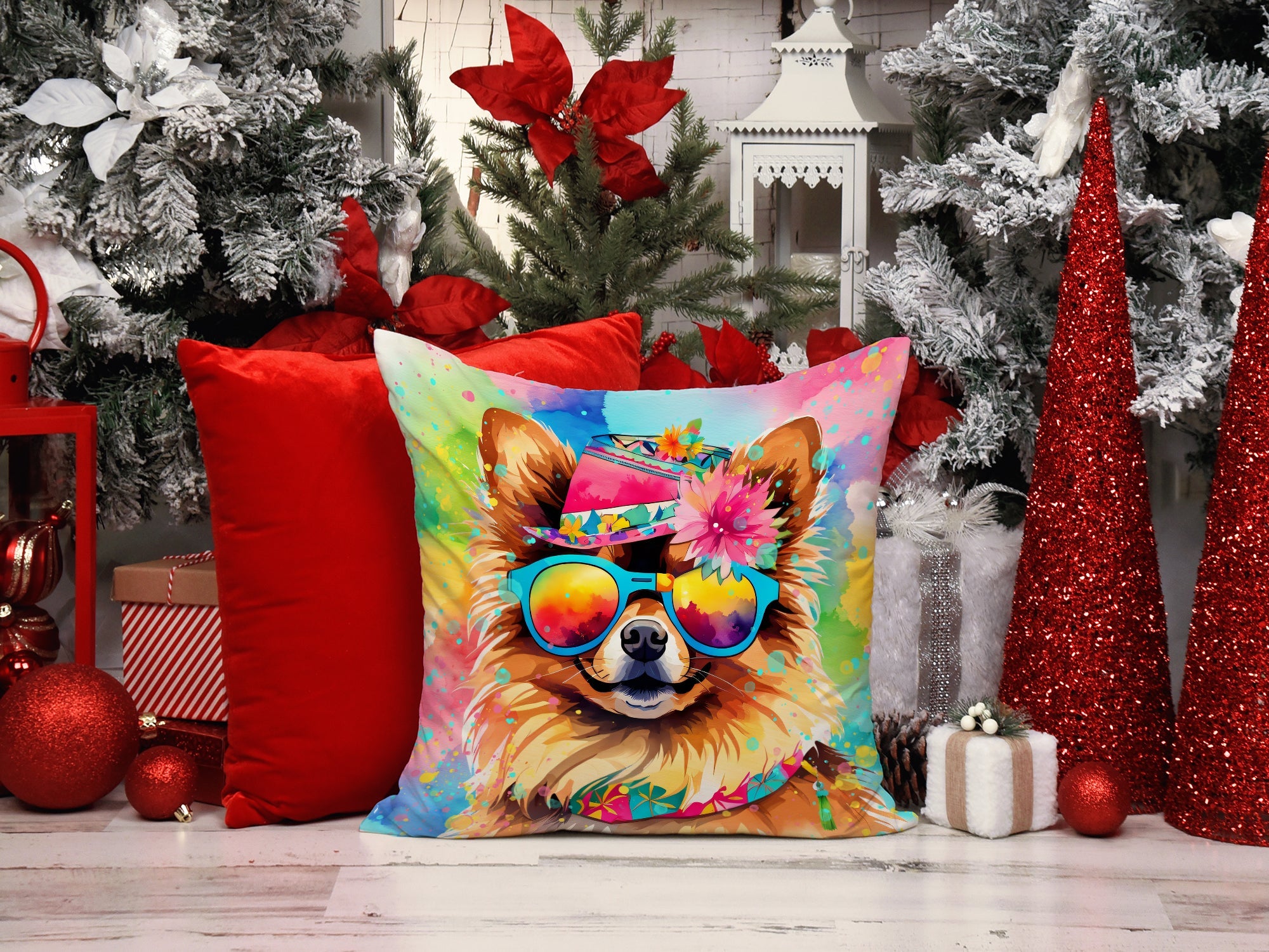 Pomeranian Hippie Dawg Throw Pillow - 14x14 Decorative Pillow – Art for Your Home & Patio